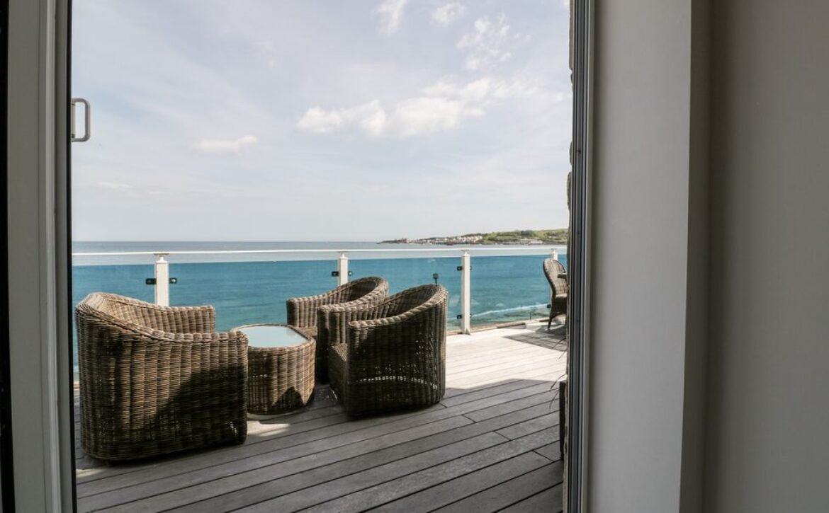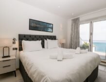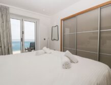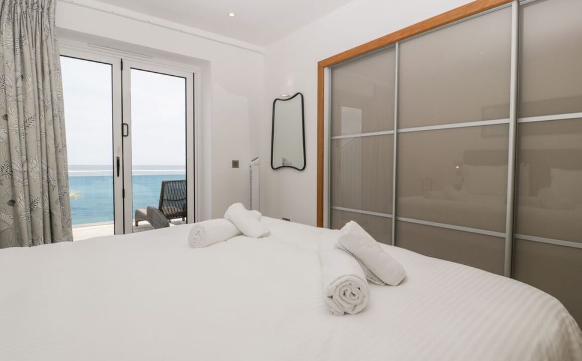 Be welcomed into the beautiful open-plan living space, showcasing the exceptional sea views on offer through the French doors, here you can look forward to cooking up a storm in the fully-equipped kitchen, featuring a handy washer/dryer and a dishwasher, ready to enjoy at the dining table for four.