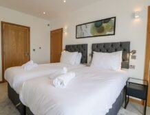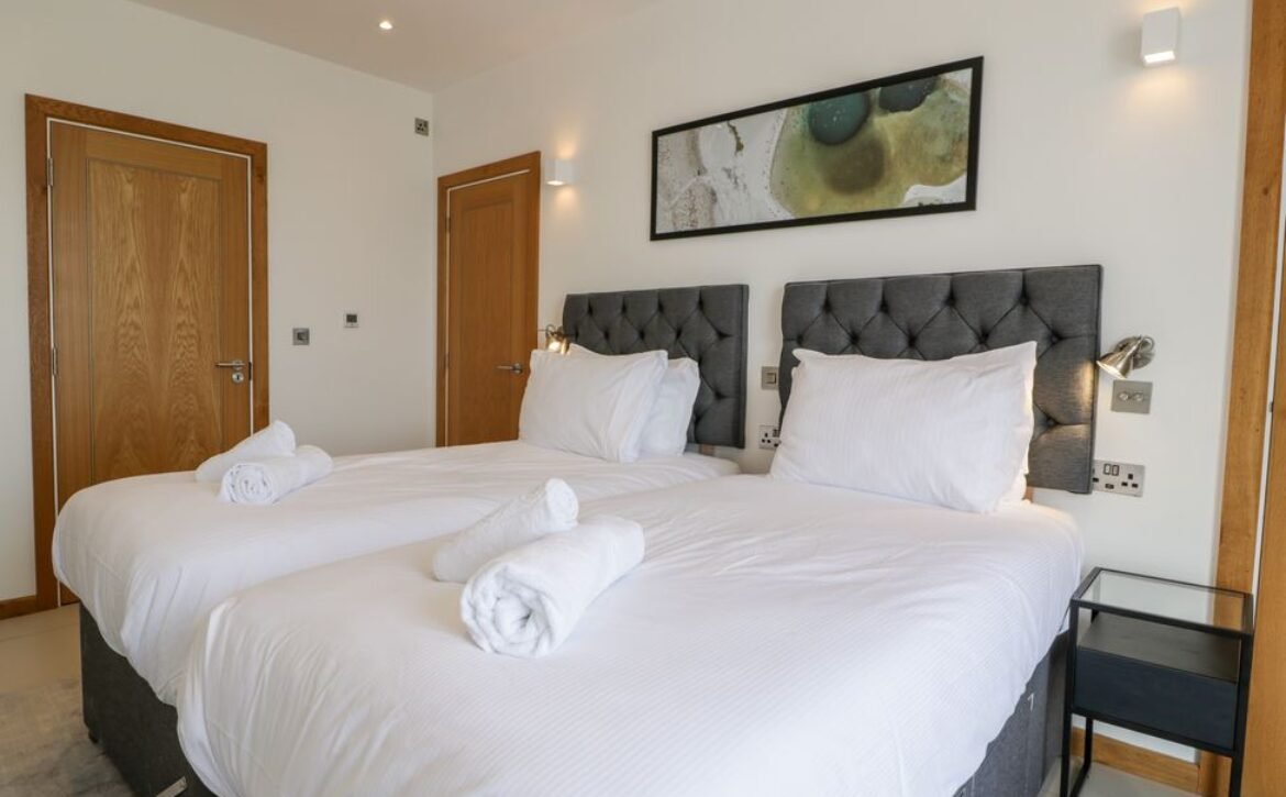 - Two bedrooms: 1 x super-king-size with en-suite shower, handheld shower, basin, heated towel rail and WC, 1 x super-king-size (zip/link, can be twin on request)
