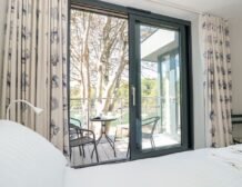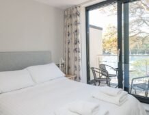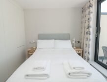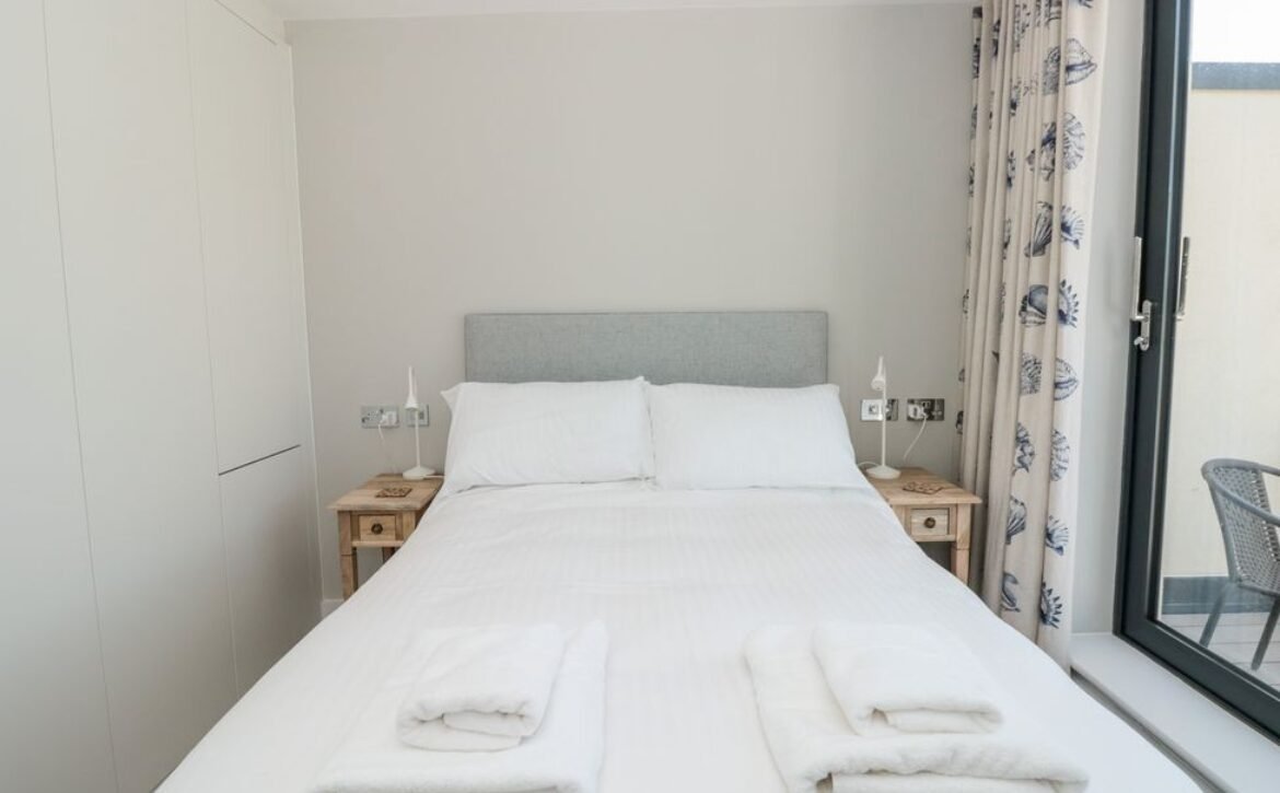 - Three bedrooms: 1 x second-floor super-king-size with en-suite bath, hand held shower, basin, heated towel rail and WC with balcony, 1 x second-floor twin with en-suite walk-in shower, basin, heated towel rail and WC, 1 x first-floor double with balcony access