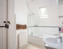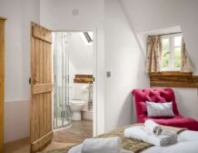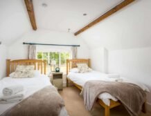 Relatively steep stairs wind up to the first-floor, where you will find three lovely bedrooms all beautifully set in the eaves of the cottage; there is a king-size bedroom with an en-suite walk-in shower, a double bedroom and a twin bedroom, all with storage space.