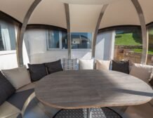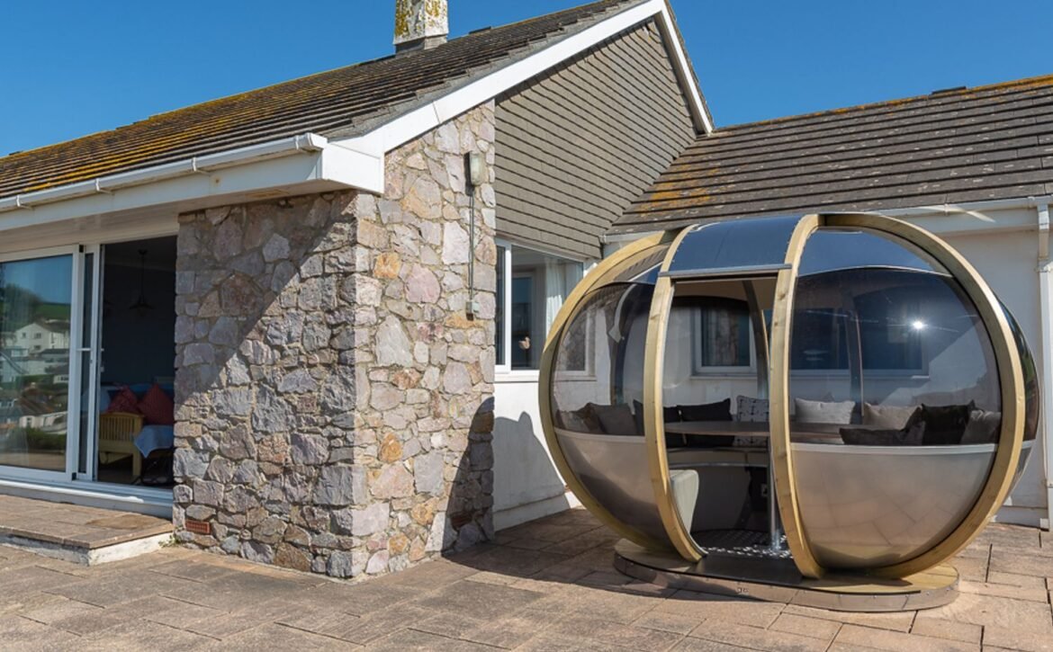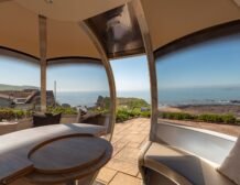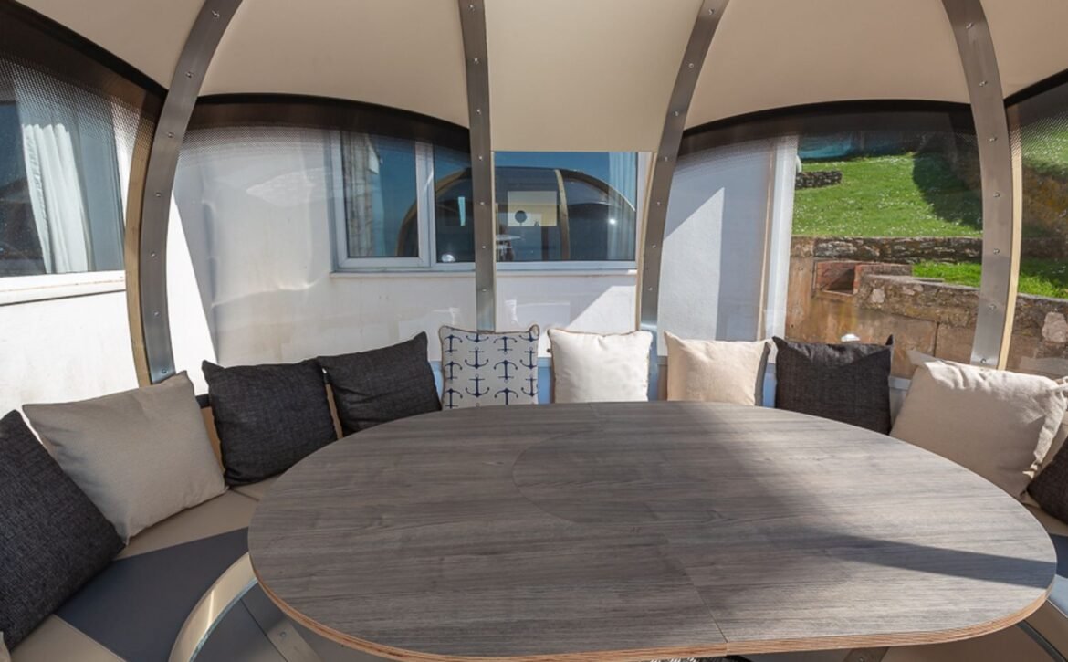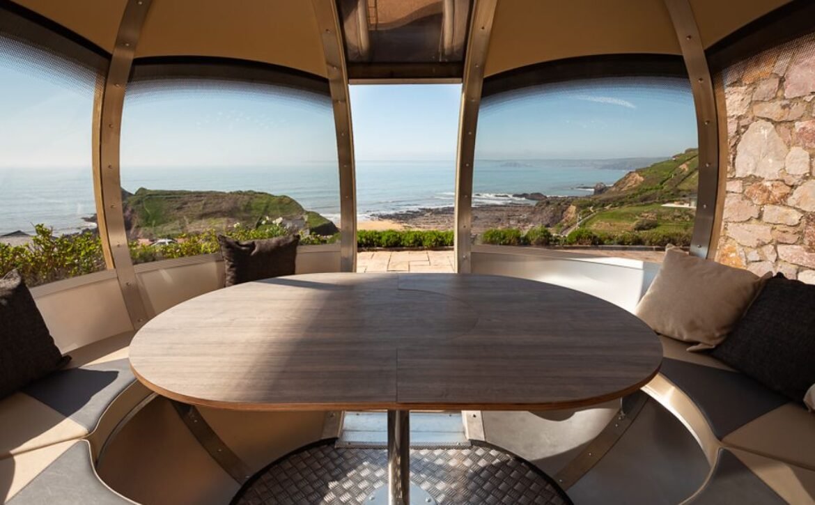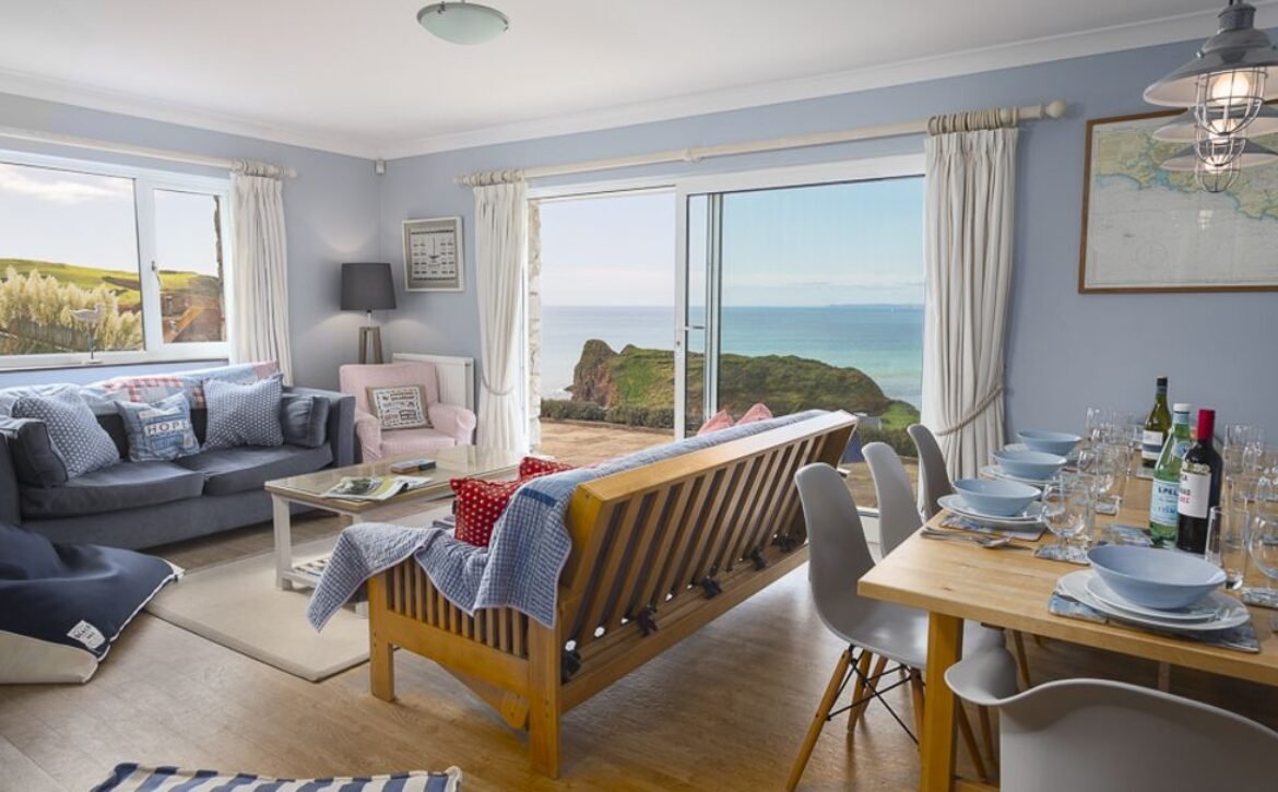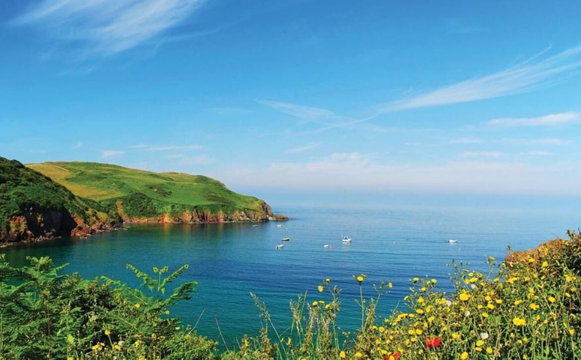 From the terrace, the view stretches from Hope Cove to Thurlestone, towards Plymouth and Cornwall.