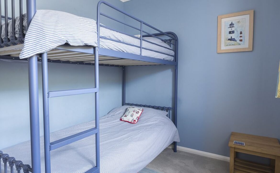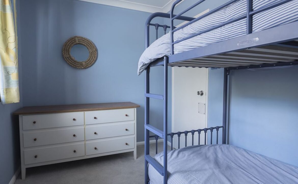 Finally, a fourth bedroom has a bunk-bed and chest of drawers, perfect for kids.