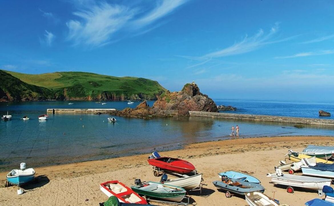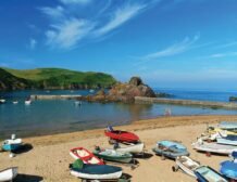 The picturesque and unspoiled village of Hope Cove lies in the sheltered curve of Bigbury Bay on Devon’s south coast. A choice destination for families, the two beaches offering soft sand and rock pools for sandcastle building and fishing for small crabs. The town remains a fishing village where crabs and lobsters are still landed, however it was once used by smugglers. Many ships have perished around the coast and the wrecks that lie beneath the waves make it a popular spot for divers. Above the beach there are a number of pubs and restaurants. The coastal footpath can be joined from here and leads towards Bigbury-on-sea in one direction and the coastal resort of Salcombe in the other.