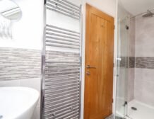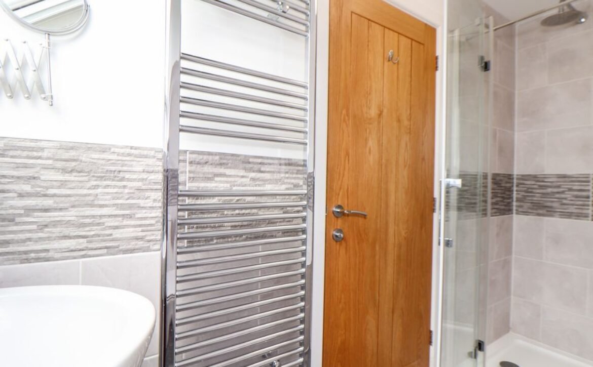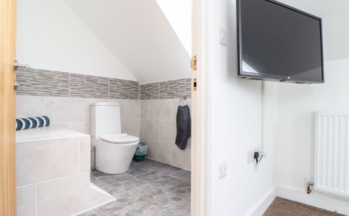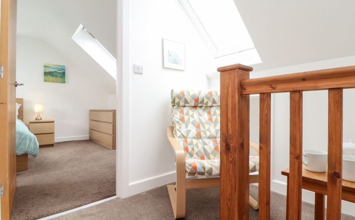 The contemporary bathroom is also on the first floor and is just the place to unwind after a day at the beach or walking the coast.