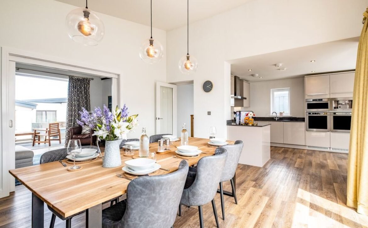 Step into the ground-floor, where you will find three beautifully appointed bedroom, two king-size, one with its own en-suite shower room, and a 2’6 twin with zip/link, along with a gleaming bathroom where you can enjoy a leisurely soak in the bath or freshen up with a refreshing shower.