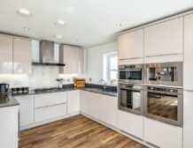 - Electric double oven, gas hob, microwave, fridge/freezer, washing machine, drying cabinet, dishwasher, wine cooler, coffee machine
