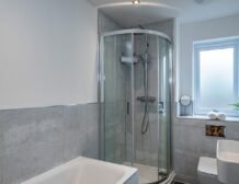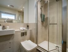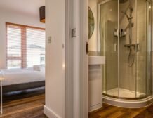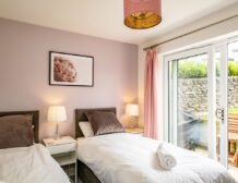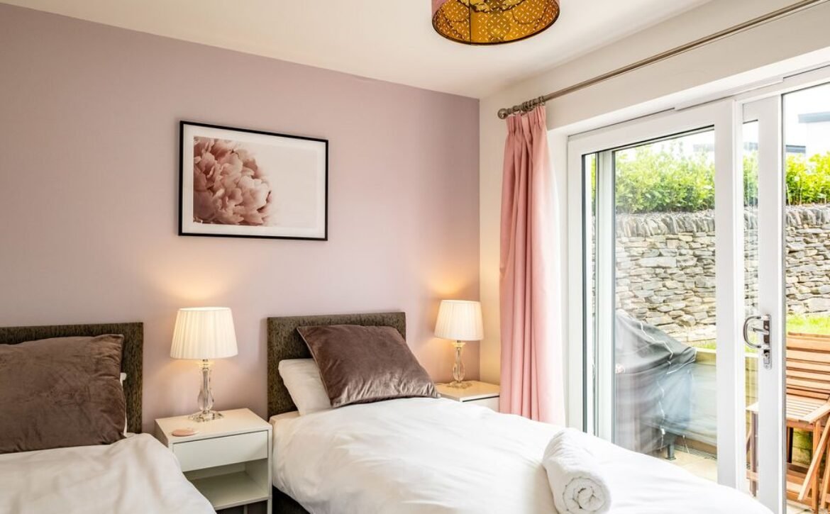 - Four bedrooms: 1 x ground-floor king-size with en-suite walk-in shower, basin, heated towel rail and WC, 1 x ground-floor king-size, 1 x double, 1 x ground-floor 2’6 twin (zip/link, can be king-size on request)