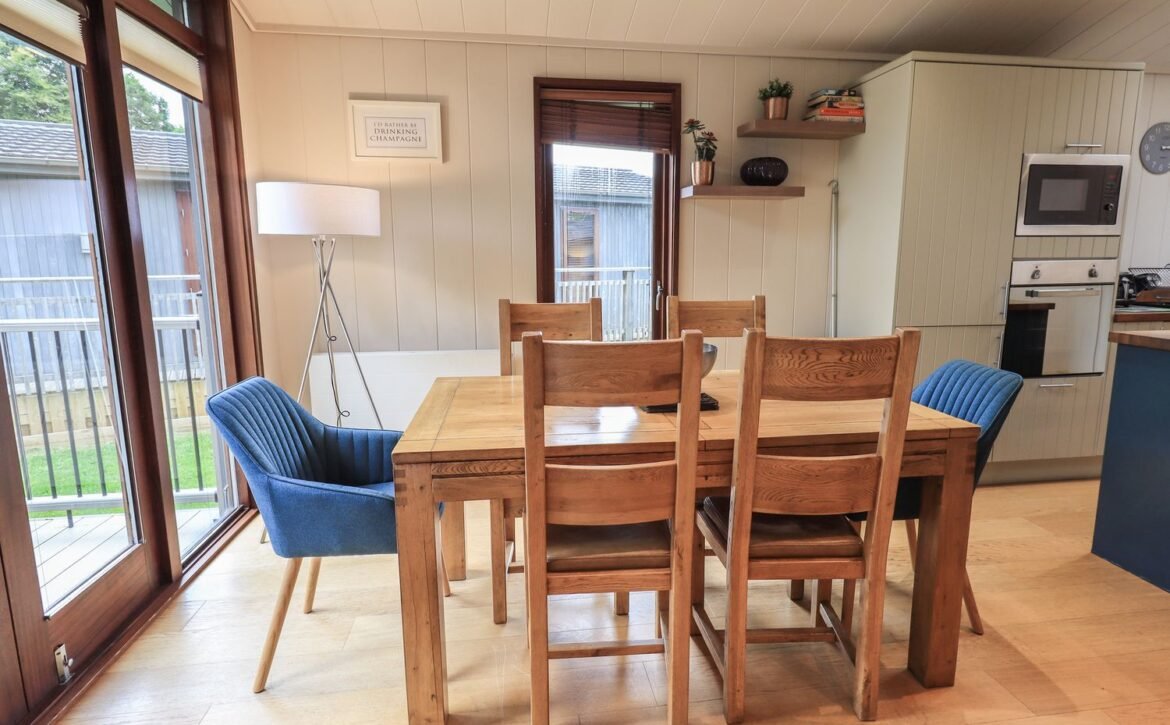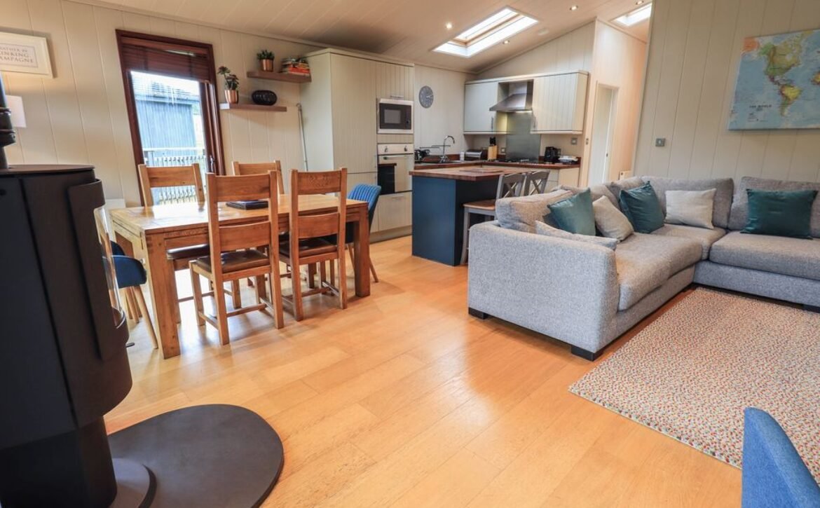 It has two-bedrooms, two bathrooms and is ideal for a family or two couples. Walk up a few steps, leave your outdoor clothing in the useful boot room and start to admire your contemporary lounge with kitchen and dining area.