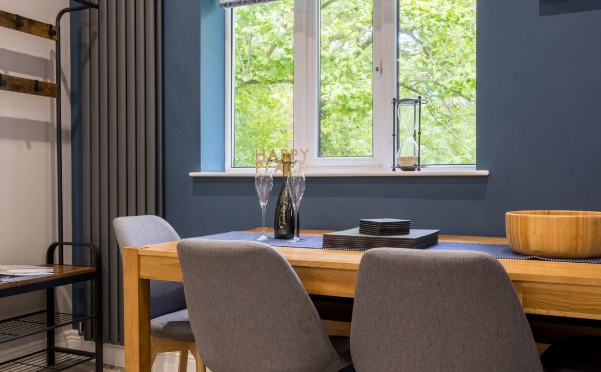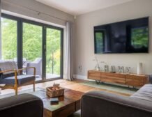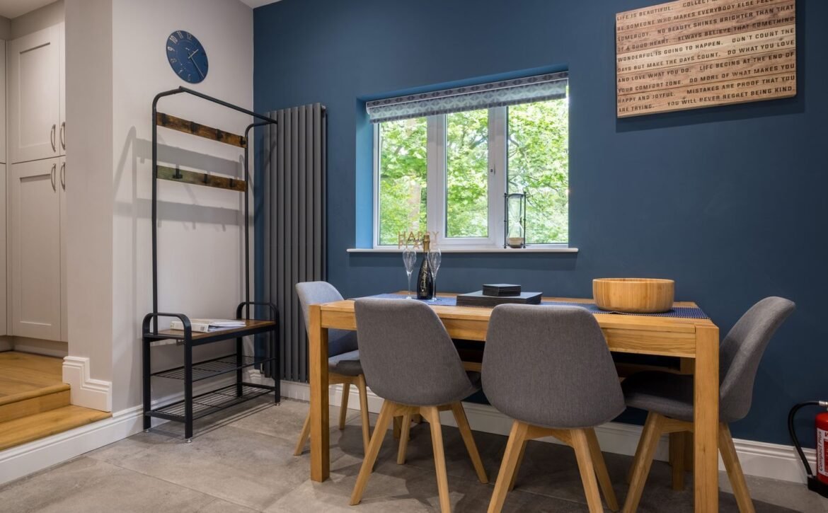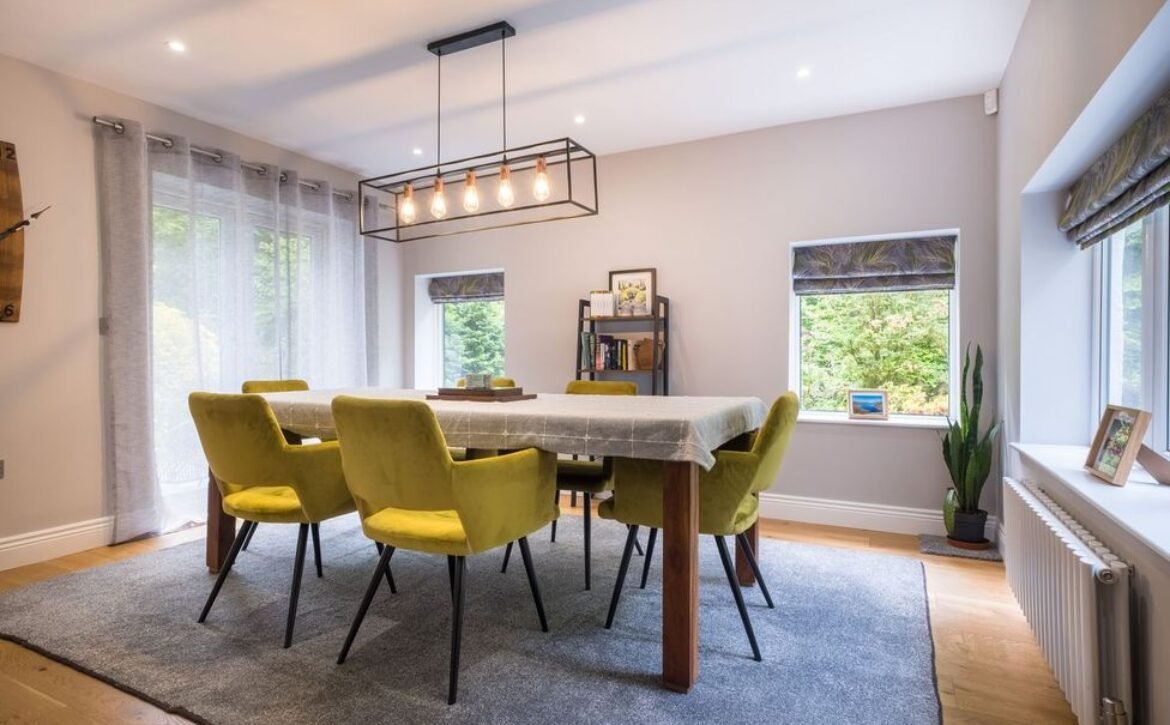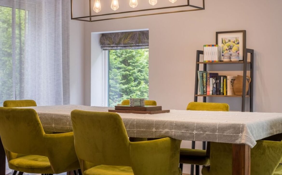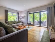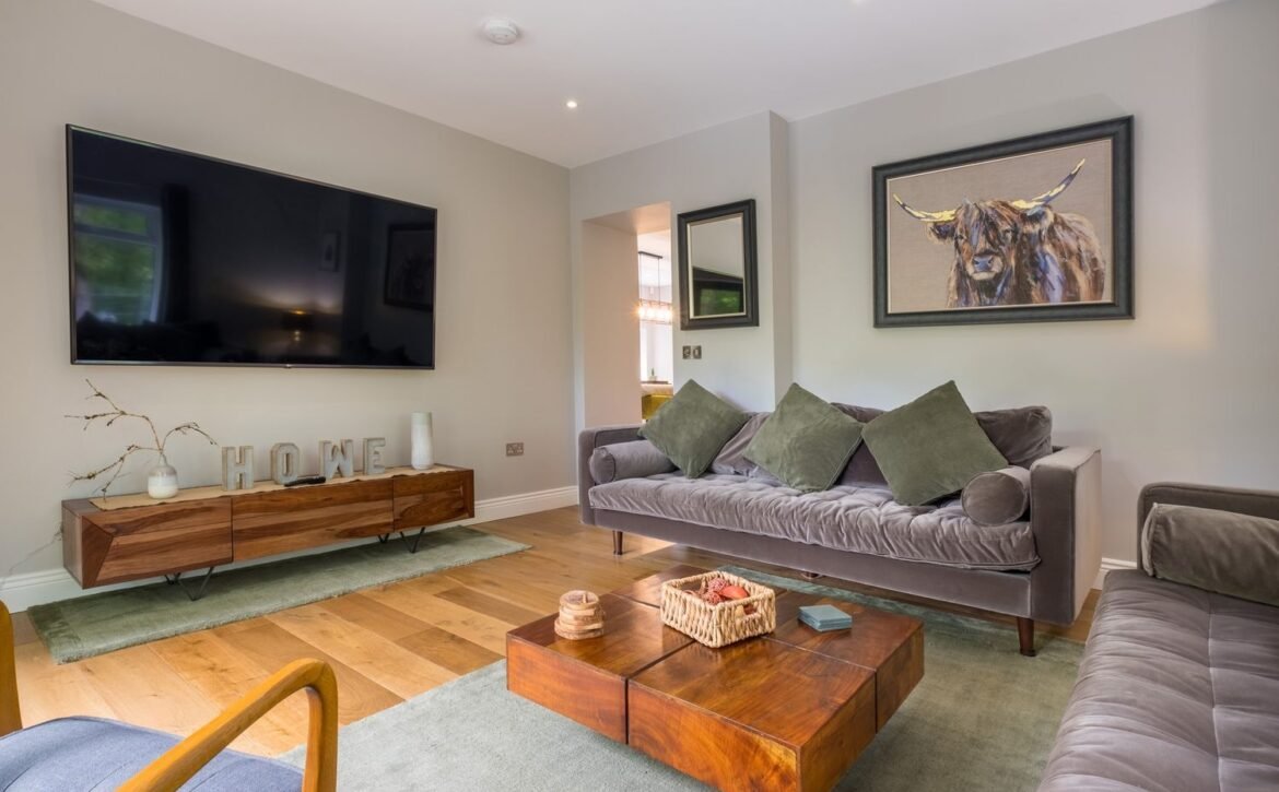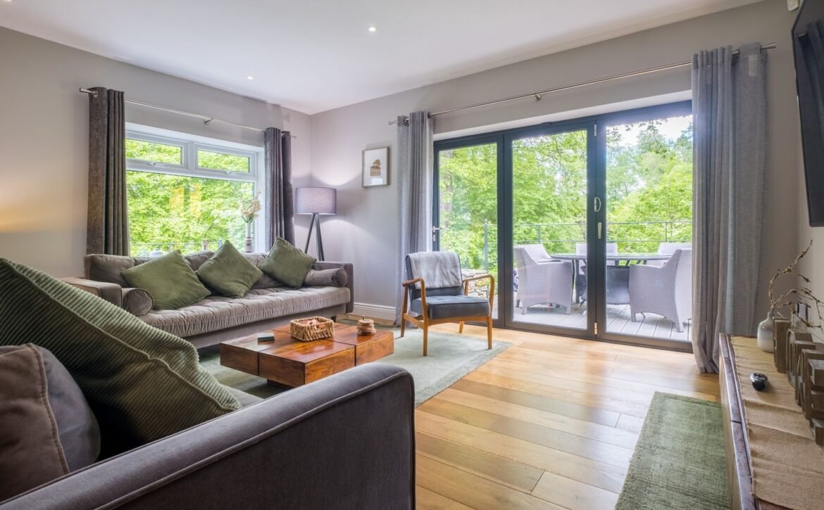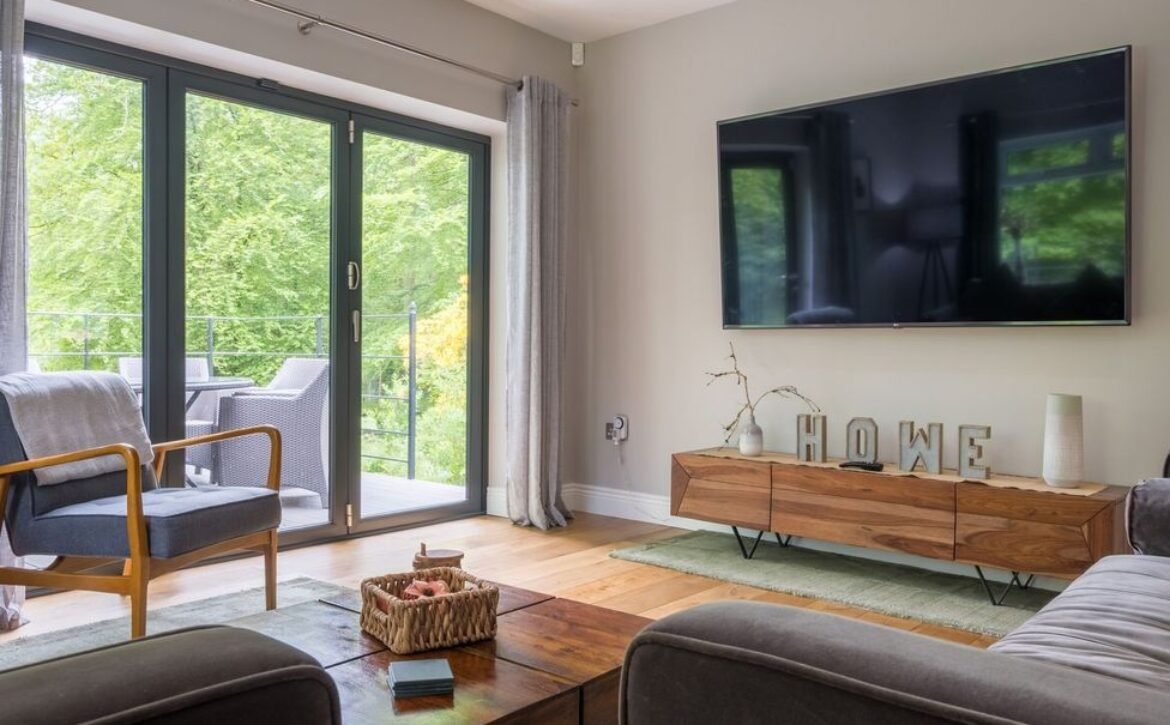As the evening draws to a close, make your way into the sitting room to cosy up in front of the Smart TV with your loved ones to relax and unwind as the sun sets through the woodland.