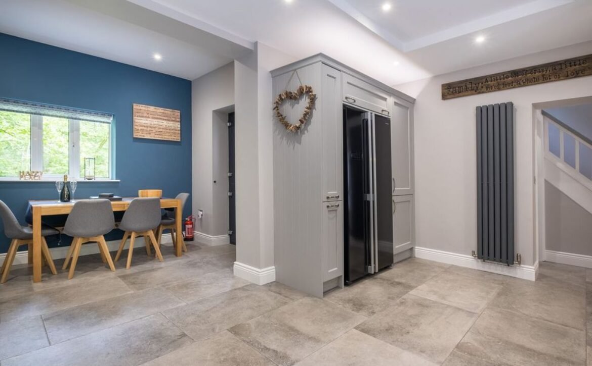 On arrival at the property, the private driveway brings you to the front door before stepping into the sleek kitchen, fit with all the amenities you need to rustle up some scrumptious meals, including a large American-style fridge/freezer and a handy dishwasher to help with the clean up after an adventurous day of exploring your surroundings.