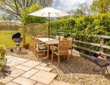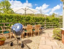 Adjacent to the conservatory there is another patio with teak garden furniture to seat 8 and a Webber BBQ, ideal for dining alfresco in the warmer months.