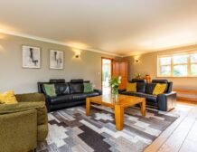 Walking through the property, conservatory has super views over the front paddock and is fantastic for relaxing on the reclining sofa whilst watch the others play with the outdoor games including Badminton, swing ball, croquet and football or play frisbee with the dog, there’s plenty of space.