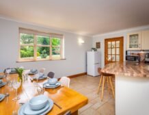 Downstairs is a spacious living area, a fully appointed luxury kitchen/breakfast/dining room, a lounge with two great big comfy leather sofas, Smart TV and a log burner, free fuel supplied.