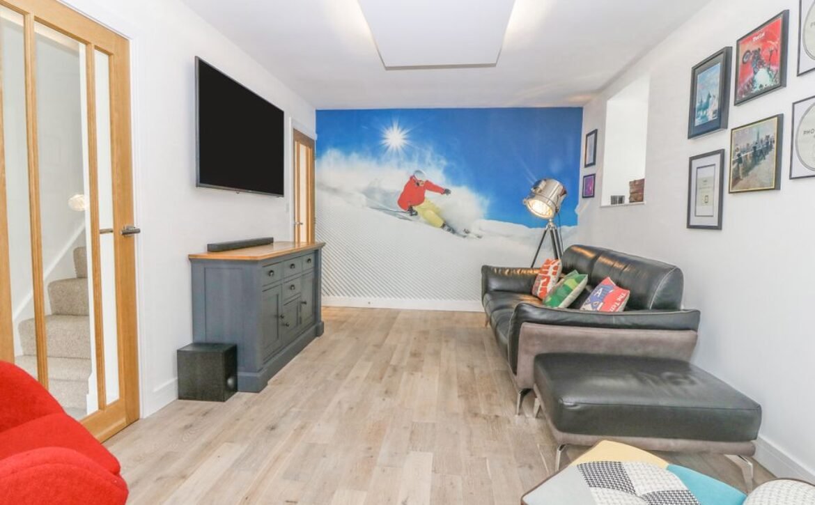 To relax, retreat to one of two plush sitting rooms, both featuring wall-mounted Smart TVs, one accompanied by an elegant woodburning stove.