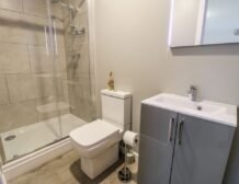 - Shower room with shower, basin and WC