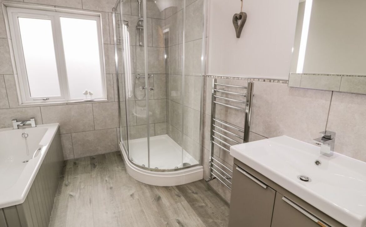 Retreat to the family bathroom for a relaxing soak in the bathtub, enjoying a moment of peace and quiet before an entertaining evening indoors.