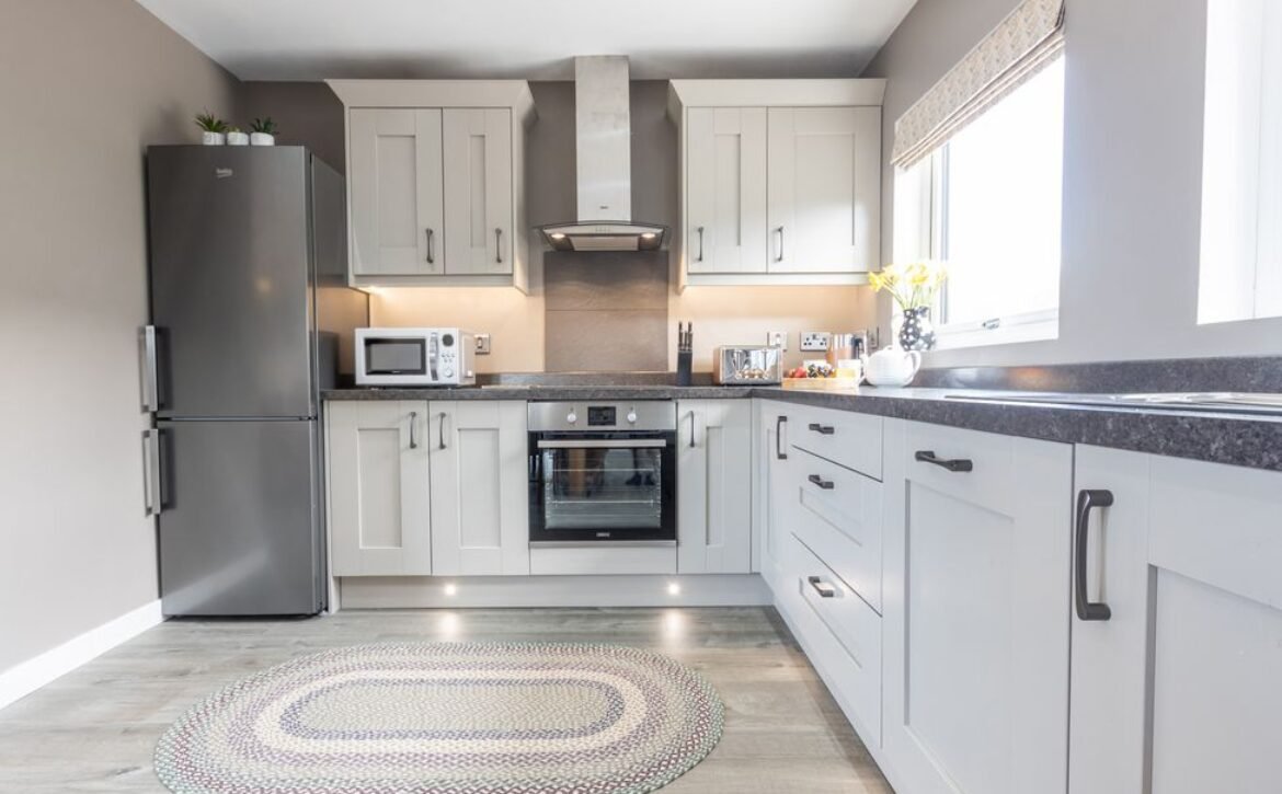 Gather snacks from the beautiful stone-coloured kitchen units or prepare a delicious three course diner to be delighted in at the oak dining table, with the help of the many contemporary appliances that sit under the stunning brown worktops.