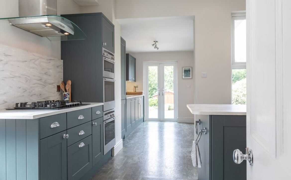 - Electric double oven, gas hob, microwave, fridge/freezer, washing machine, tumble dryer, dishwasher, and extractor fan