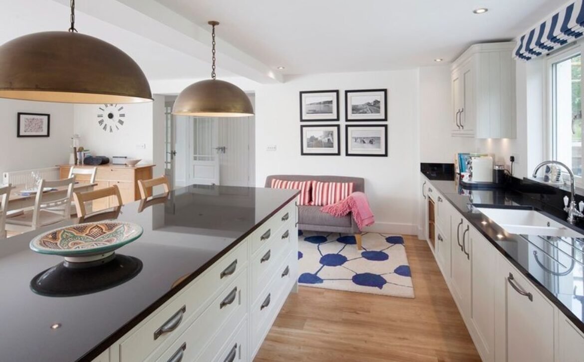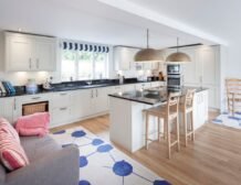 Spread out in the huge open-plan living space and throw open the wide bi-fold doors to bring the outside in, whilst cooking up a seafood feast in the sleek kitchen; well laid-out with plenty of work surfaces, this is a welcoming place to create something simple and delicious.