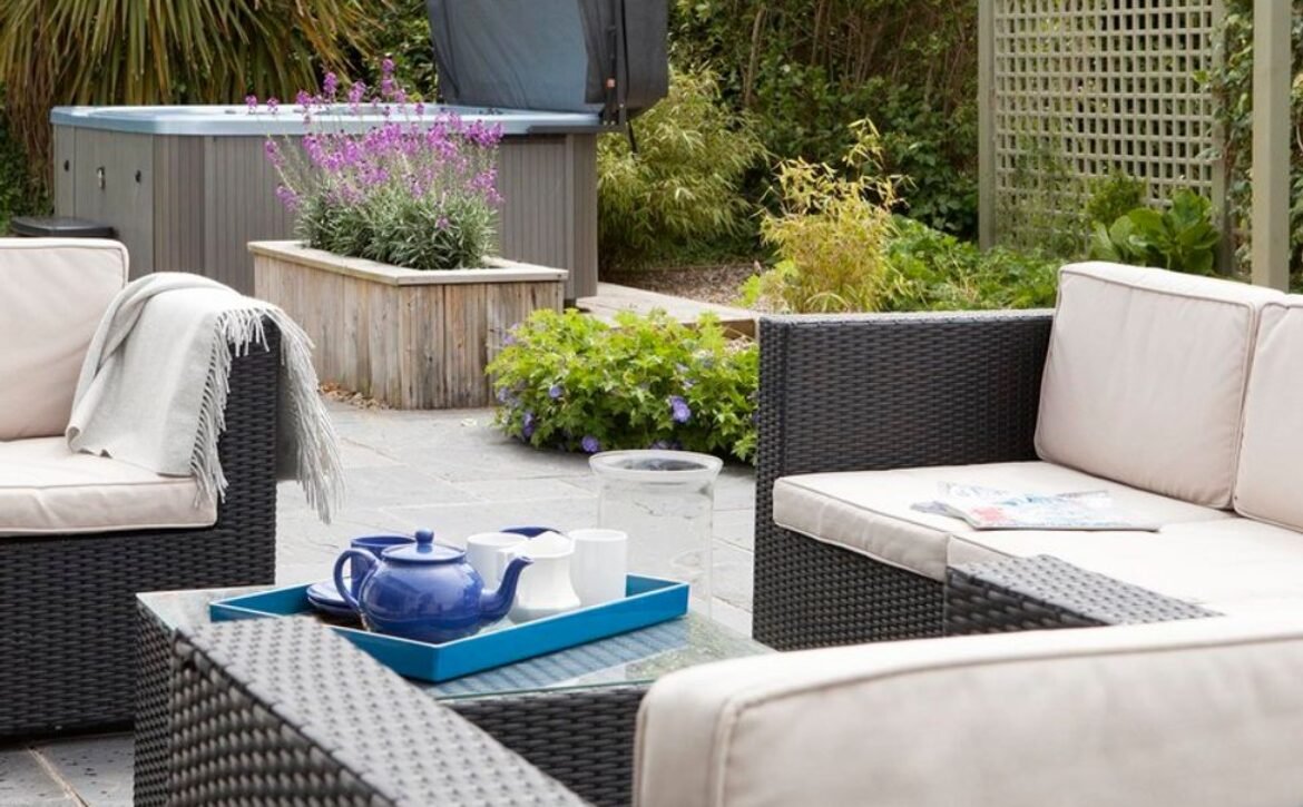 Sliding bi-fold doors open out onto beautifully designed, landscaped grounds and terraces with the advantage of a hot tub (available at an additional weekly charge), and a level lawn at the rear of the property.
