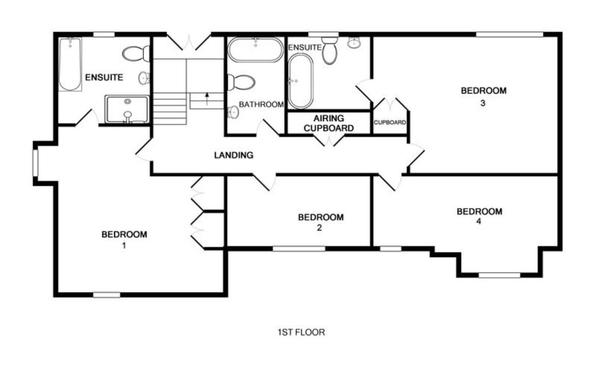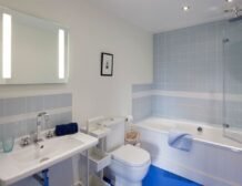 - Four bedrooms: 1 x super king-size double with en-suite bathroom with bath, separate shower, basin and WC, 1 x bunk beds & 1 single, 1 x super king-size double with en-suite bathroom with bath, shower over, basin and WC, 1 x twin