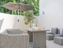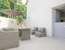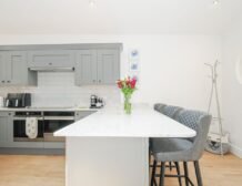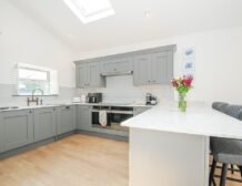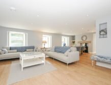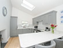 Upstairs you will find three well-presented bedrooms and as you move through the property you’ll find a beautiful kitchen, with ample appliances to cook up delicious meals for the group; enjoy your homemade feasts around the dinner table or out on the furnished patio for some alfresco dining.