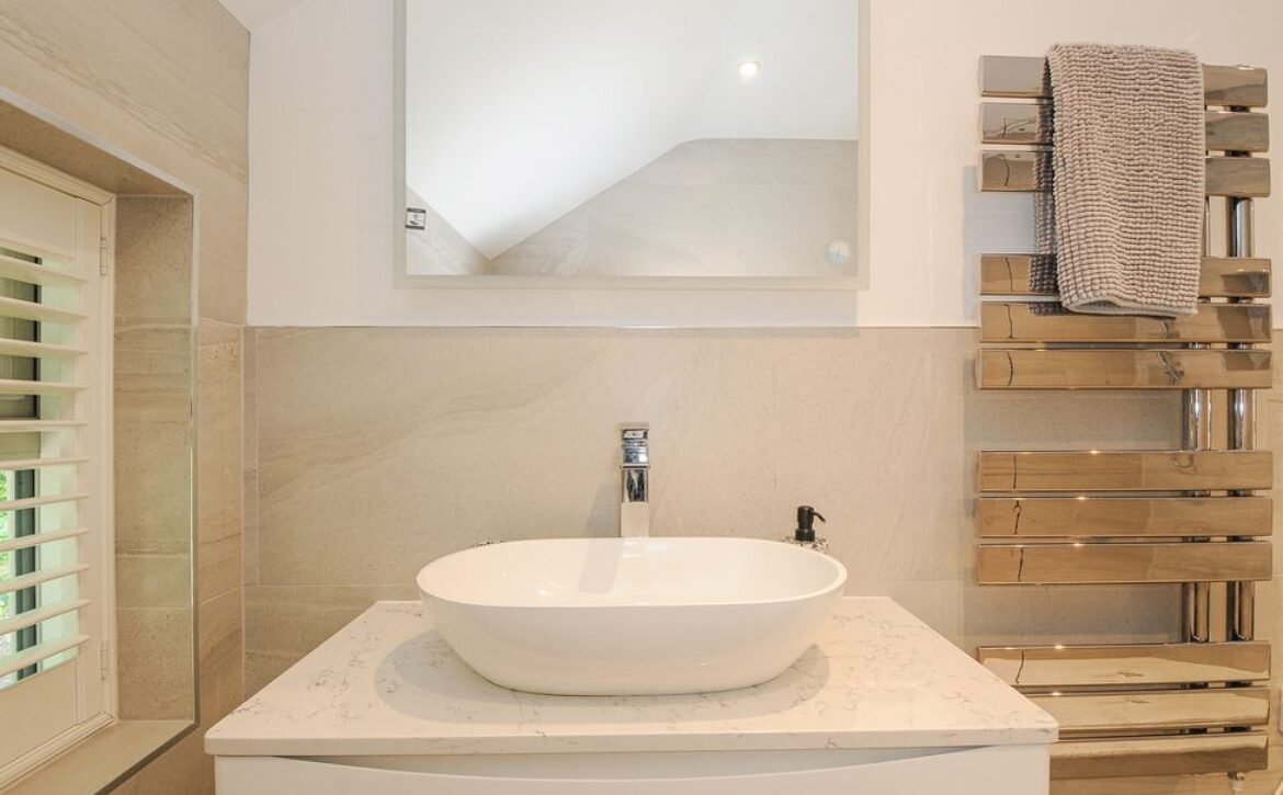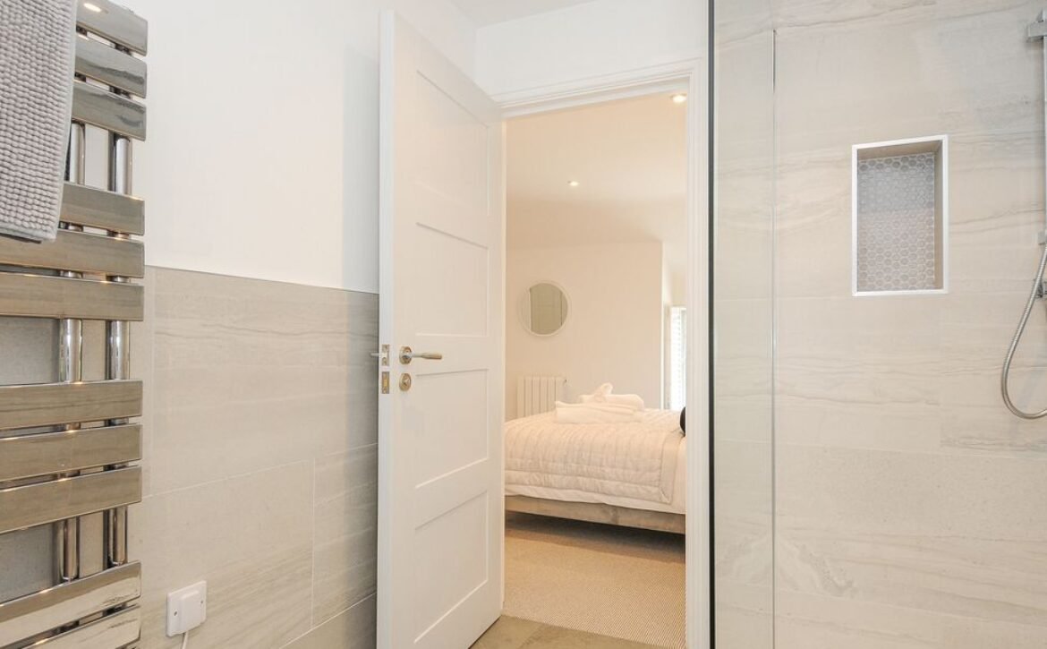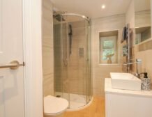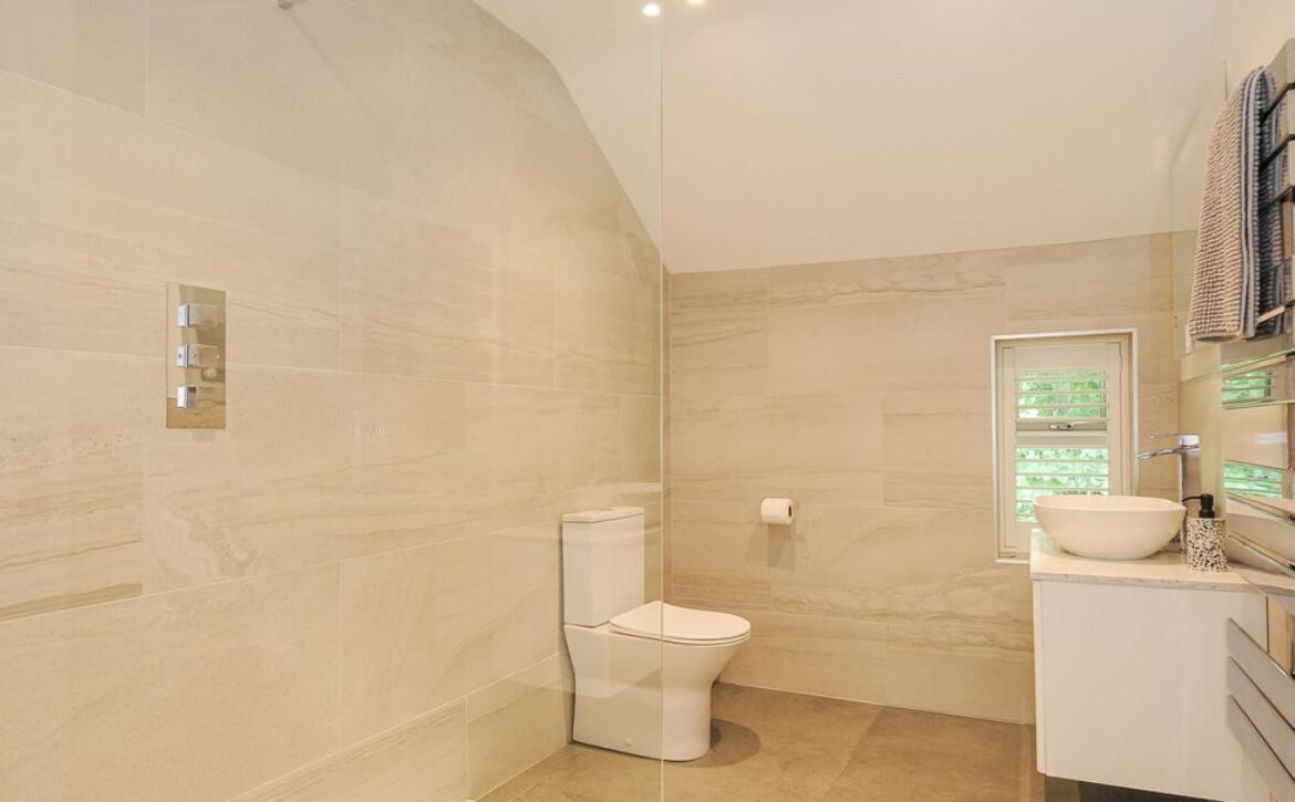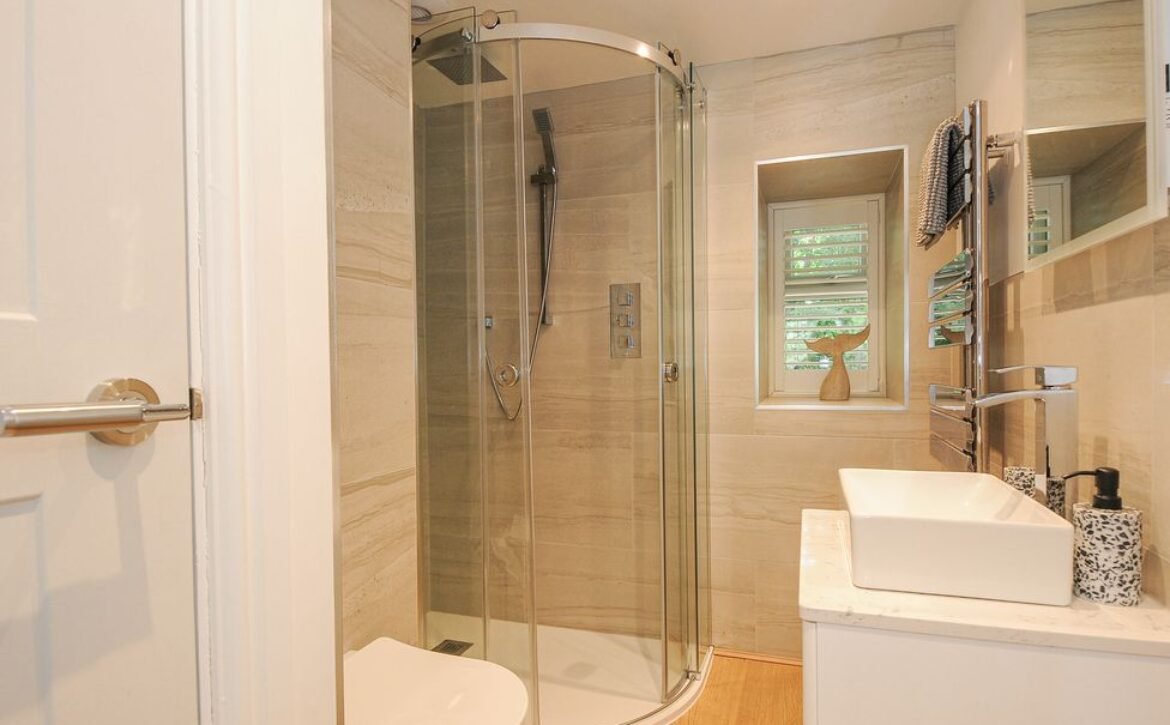 - Ground-floor shower room with walk-in shower, basin, heated towel rail and WC