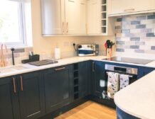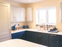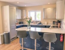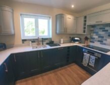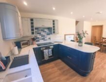 The chic navy kitchen area provides an excellent opportunity for the group chef to excel in their culinary skills whilst everyone discusses the days discoveries and forward plan the next day’s adventure.