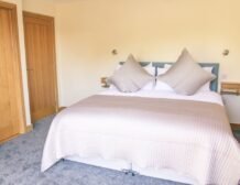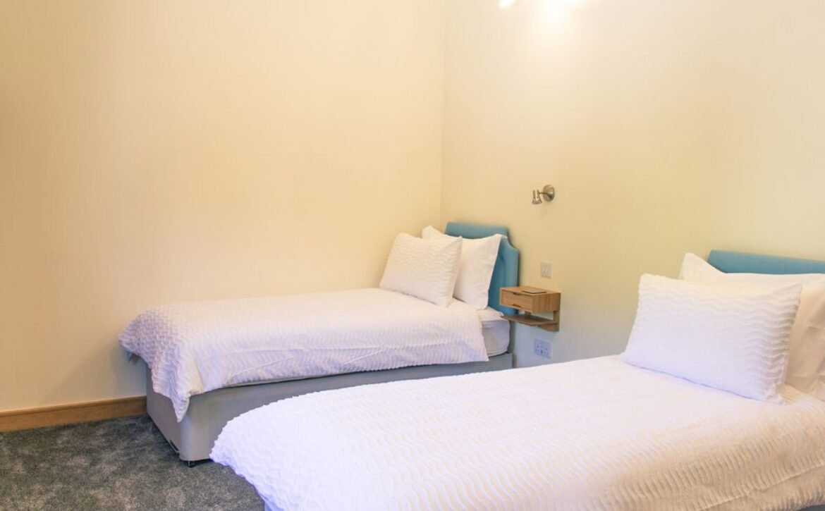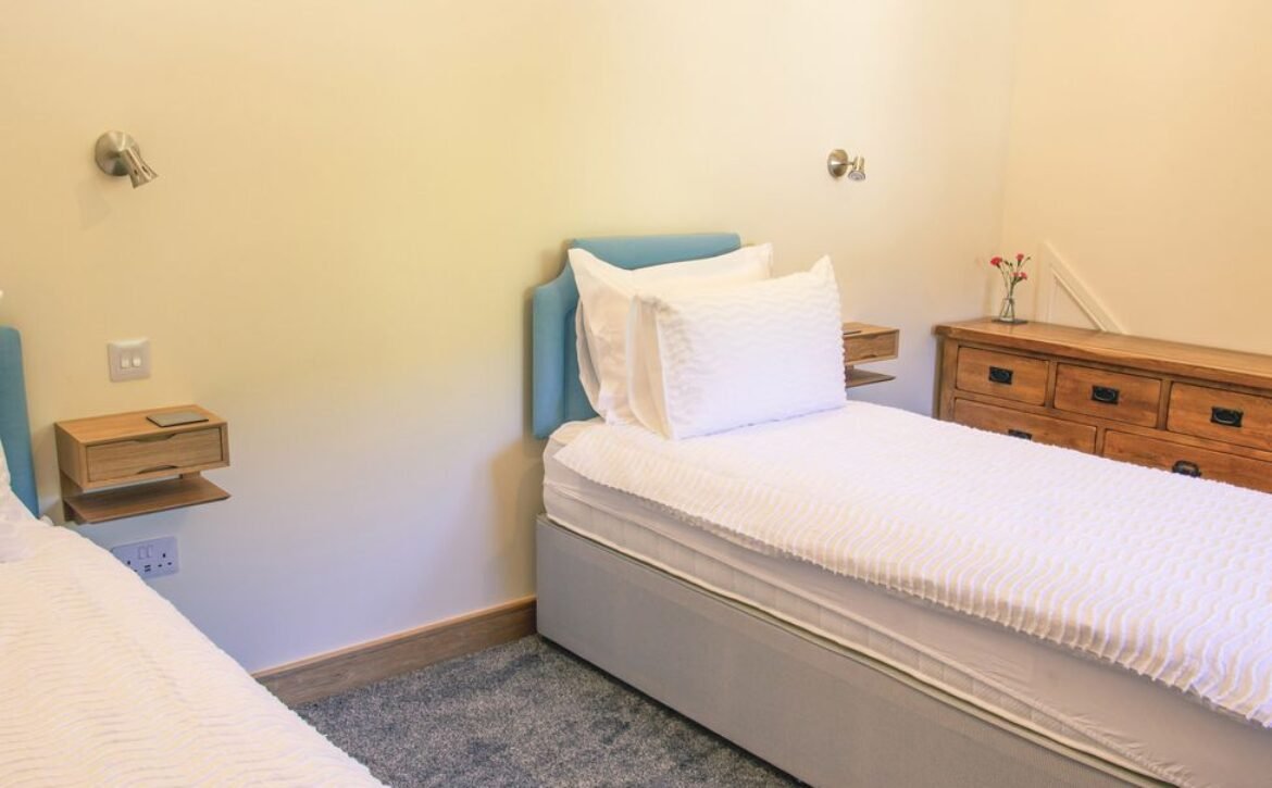 - Four bedrooms: 2 x ground-floor super-king-size (zip/link, can be two singles upon request), 1 x super-king-size with en-suite bathroom with bath, hand-held shower, basin, heated towel rail and WC, 1 x super-king-size (zip/link, can be two singles upon request) with en-suite wet room with shower, basin, heated towel rail and WC