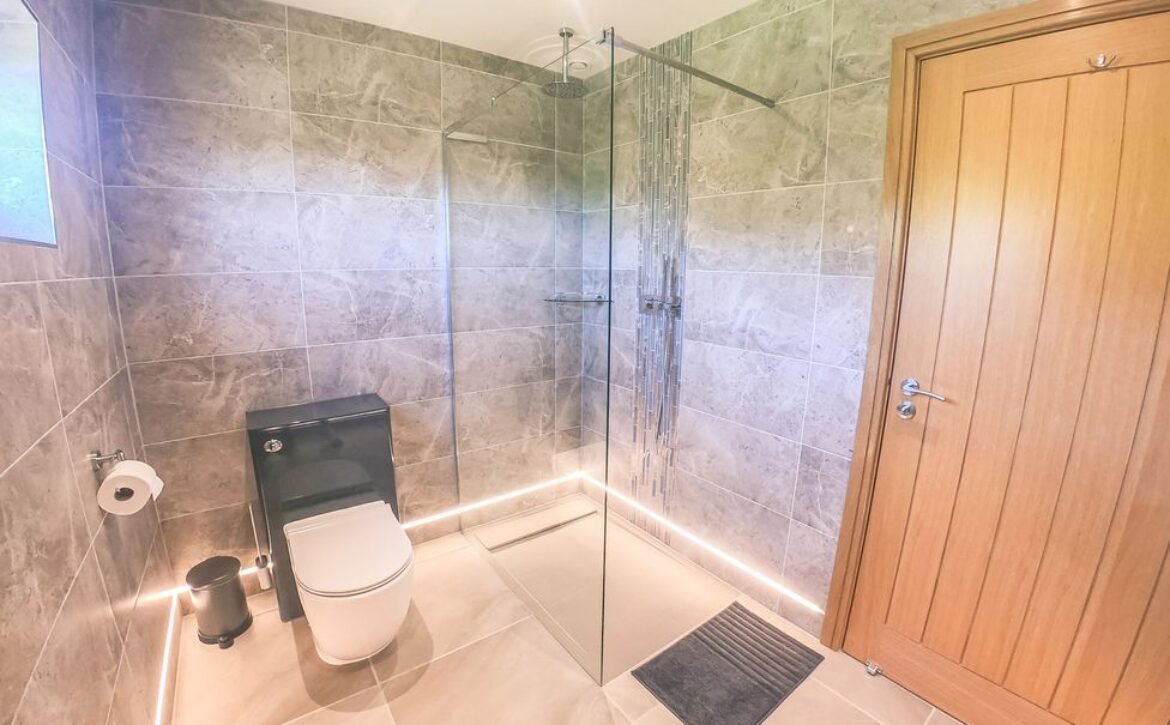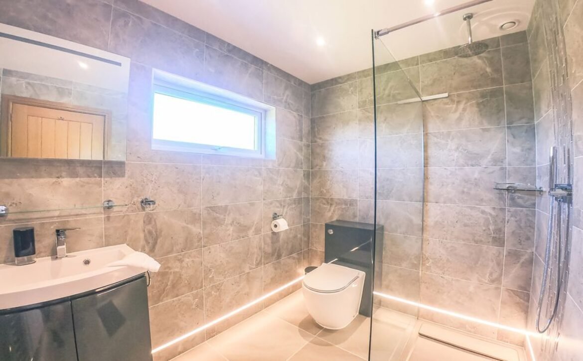 - Ground-floor wet room with shower, basin, heated towel rail and WC