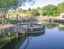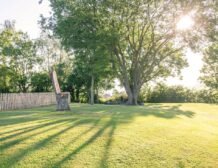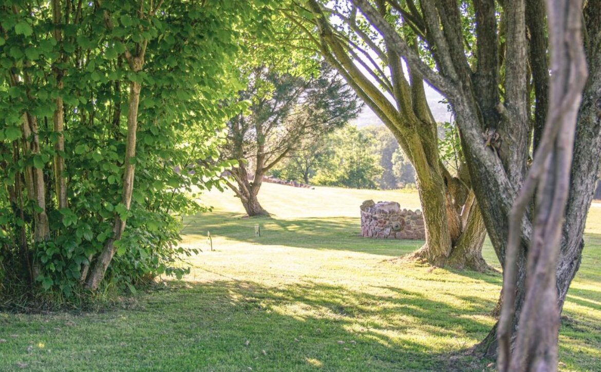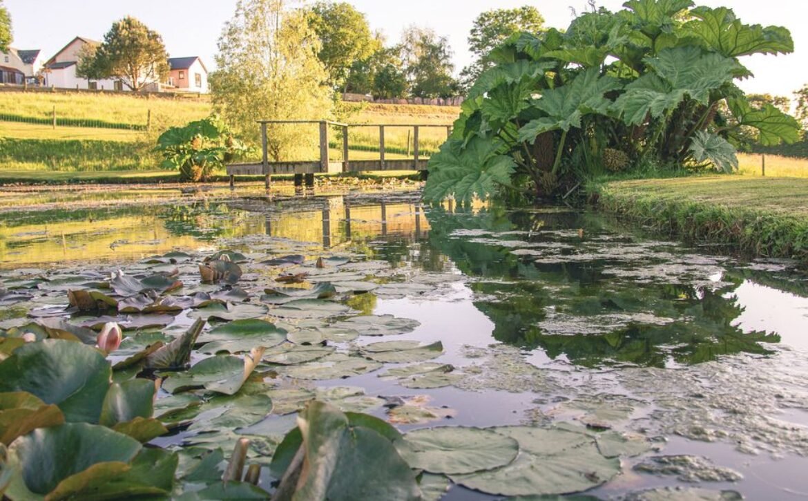 Your attention will be drawn to the swallows dipping and the fish cruising in the pond as the water gently trickles in from the stream.