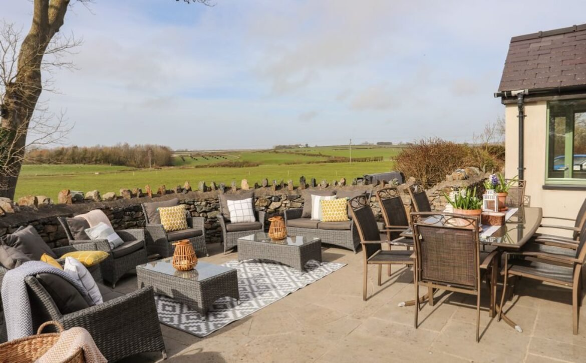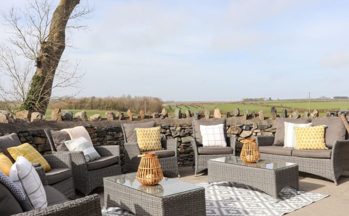 There is also a play room with a sofa bed and Smart TV. On the ground floor there is a cloakroom with loo and wash hand basin. The bedrooms consist of a master room with a king sized bed, flat screen TV and ensuite a power shower, loo and wash hand basin. There is another bedroom with a king sized bed and two twin bedrooms. The family bathroom has a bath with shower over, loo and wash hand basin. The outside space is just wonderful as you’re surrounded by glorious Welsh countryside!