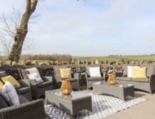 There’s a large terrace with lighting, garden furniture and a patio area which is ideal for gathering the clan together on warm summer evenings.