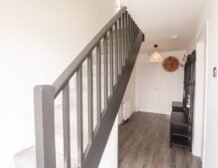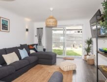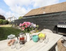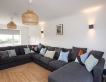 The bedrooms are situated upstairs and include three doubles and a triple bunk, plus there is a sleek shower room to serve them.