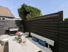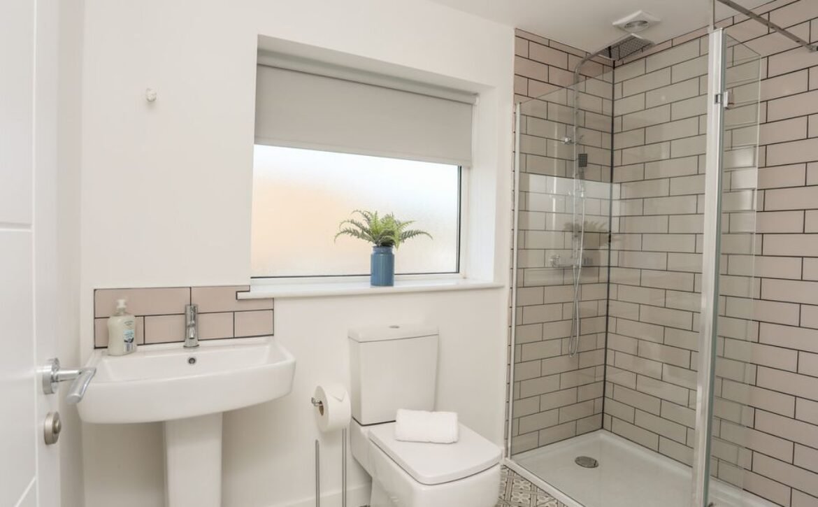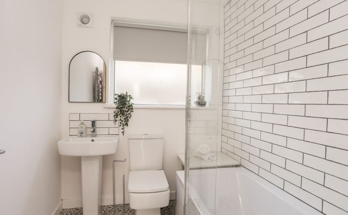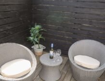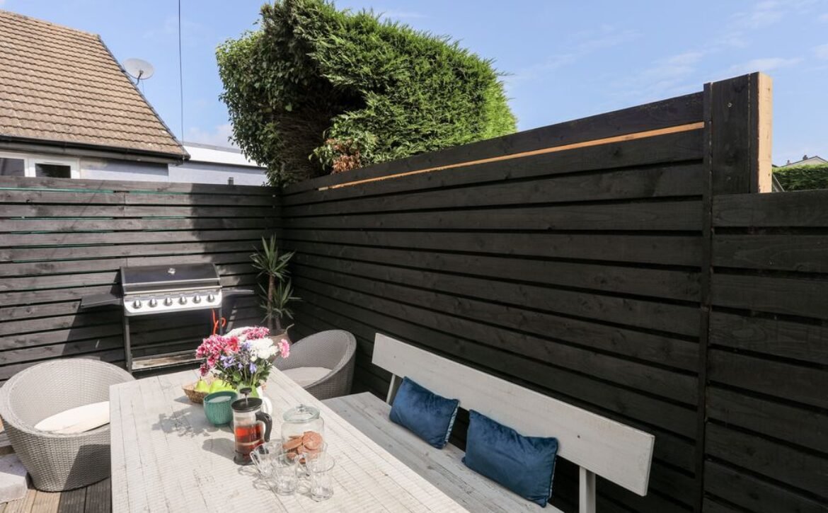 Step outside and enjoy a moment in the enclosed garden before starting your evening routine in the bathroom.