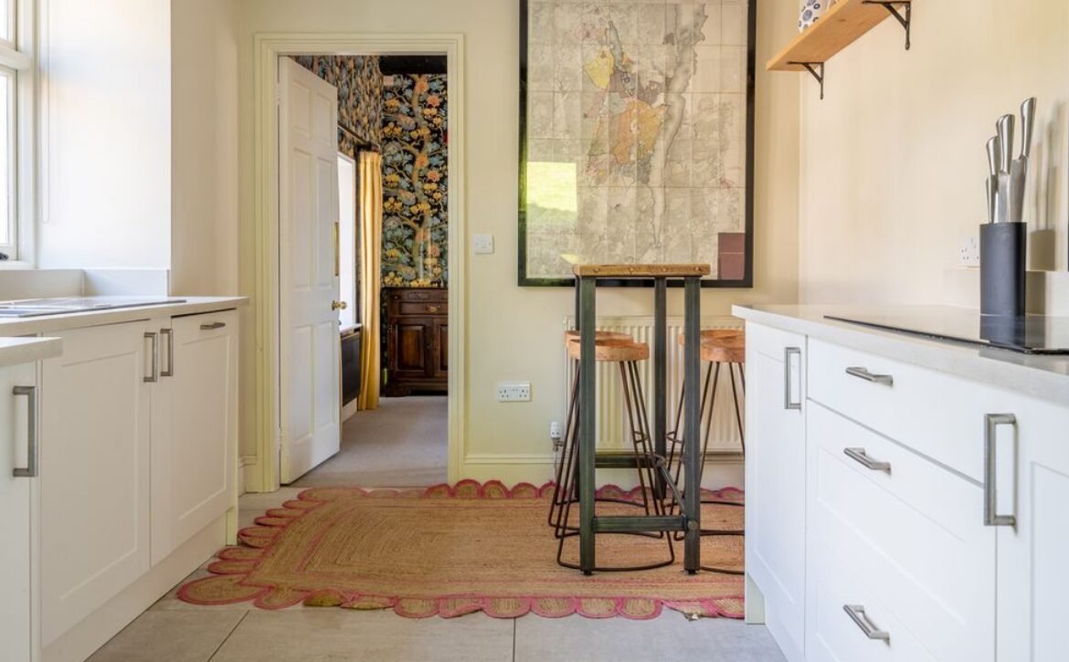 A contemporary kitchen is light and refreshing, complemented by a breakfast table so you can relax with your coffee in the morning.