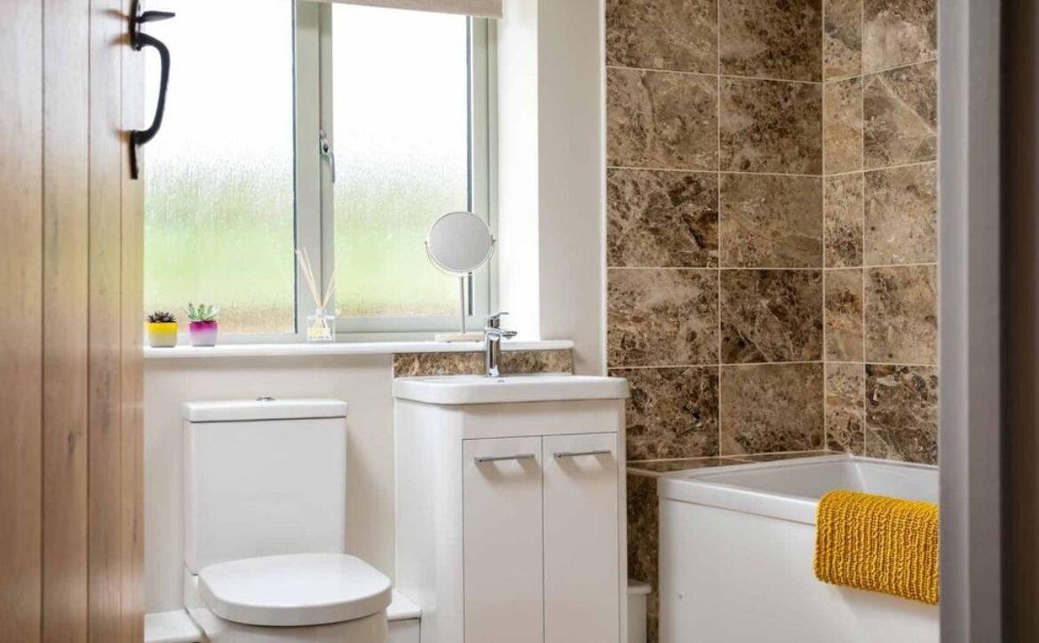 (Hetty’s Stables – 1091364) A shared driveway greets you on arrival before you unload your luggage through the front door, directly into the inviting open-plan living area, home to a warm and welcoming, dual aspect sitting room that is flooded with natural light from the floor to ceiling windows with striking exposed brick wall and a warming woodburning stove to warm your cockles on a cold winter evening, along with a light and airy kitchen/diner which is ideal for home cooking and has all the facilities you require to whip up a delicious meal before retreating to the wooden dining table to enjoy your meal with your loved ones, whilst your toes are warmed by the underfloor heating.