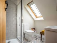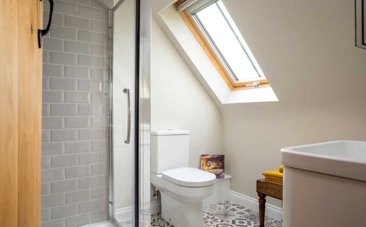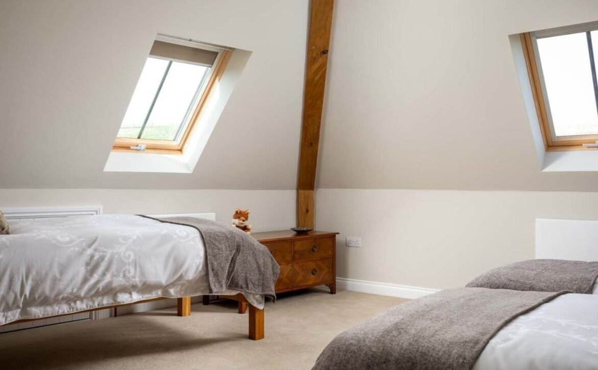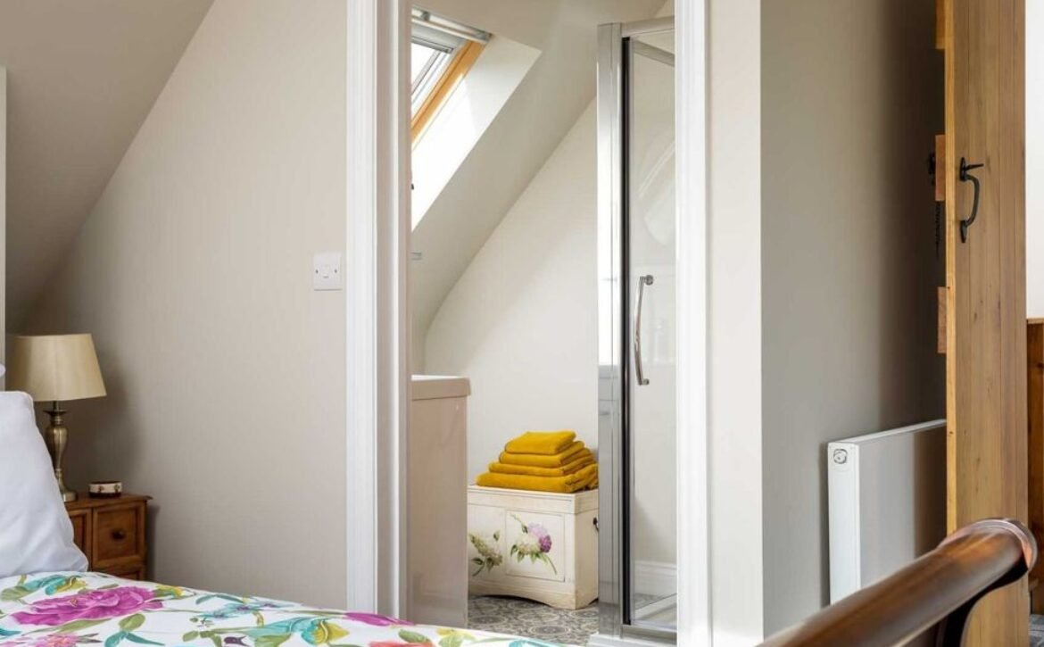 A staircase concealed behind a fire door in the sitting room leads up to the first floor where you will find two homely bedrooms; the master overlooks the lane and Windrush Valley in the distance through lovely dual aspect window, complete with an attractive king-size wooden sleigh bed and has a tastefully decorated walk-in shower room, the second bedroom located in the eaves of the property has beautiful countryside views and exposed wooden beams and contains four single beds, perfect for a family, with an en-suite walk-in shower room.