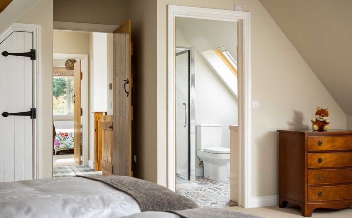 Bedroom three is conveniently located on the ground floor and is situated perfectly for guests who have limited mobility; the room contains a welcoming king-size bed, hanging and drawer space, and benefits from an en-suite bathroom.
