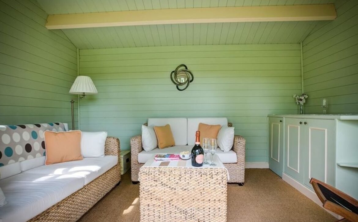 - Summerhouse with fridge and comfortable seating..