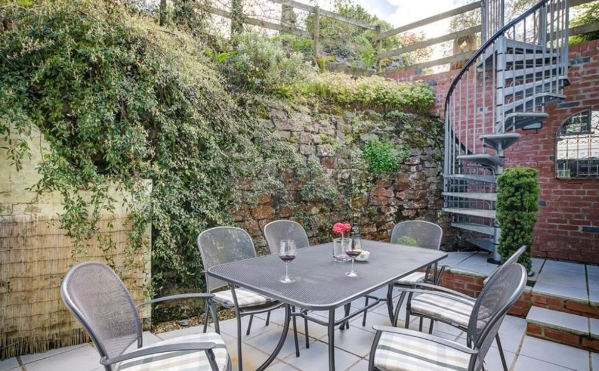 Note: Small children should be supervised in the garden due to changes in level and steep spiral staircase leading to patio area. This may also not be suitable for those with limited mobility.