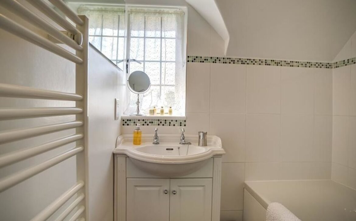 - Three bedrooms: 1 x king-size double with vanity unit and basin, 1 x twin, 1 x second floor double with French windows leading out to the garden