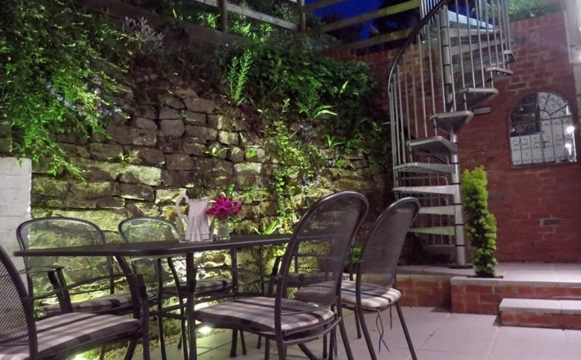 - Note: Small children should be supervised in the garden due to changes in level and steep spiral staircase leading to patio area