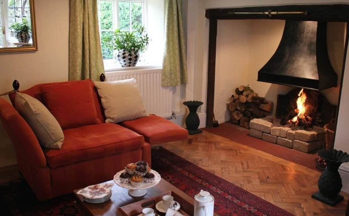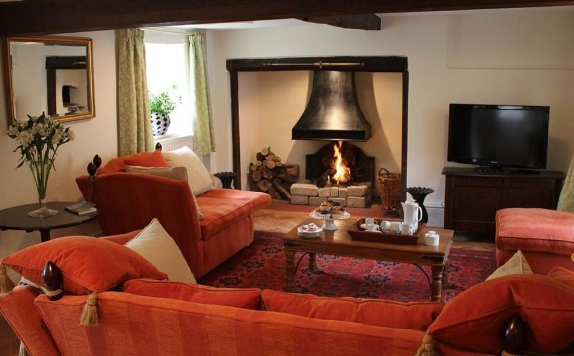 - Lounge with comfortable seating and inglenook fireplace