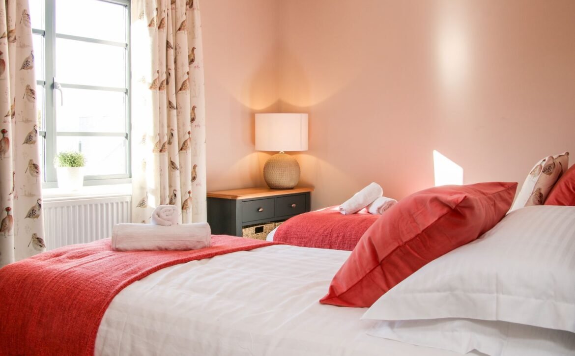 - Four bedrooms: 1 x super-king-size (zip/link, can be twin on request) with en-suite walk-in shower, basin and WC, 1 x king-size with en-suite walk-in shower, basin and WC, 1 x king-size and 1 x twin with Jack-and-Jill access to bathroom
