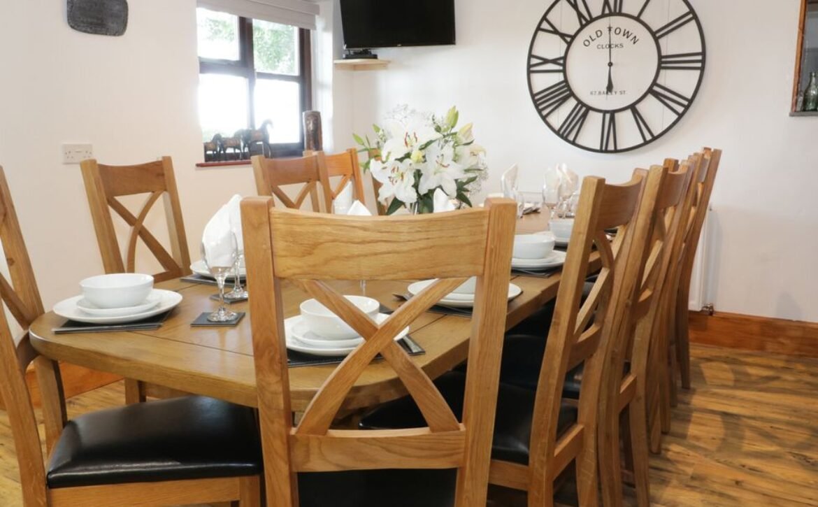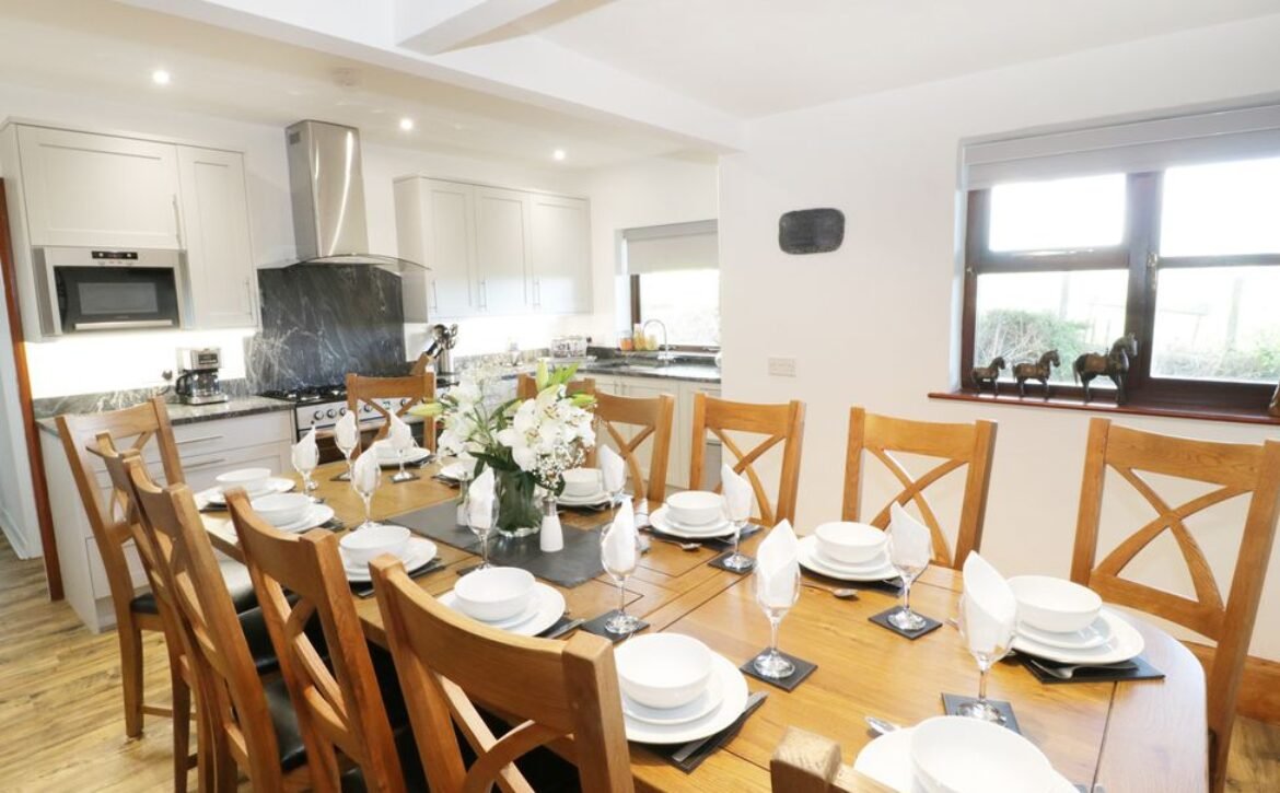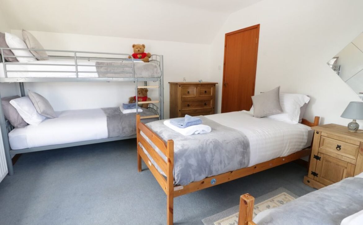 - Five bedrooms: Bedroom 1 – 1 x super king size bed with ensuite bathroom, Bedroom 2 – 1 x king size bed, Bedroom 3 – 2 x single beds and 1 x bunk beds, Bedroom 4 – 2 x single beds, Bedroom 5 – 1 x single bed