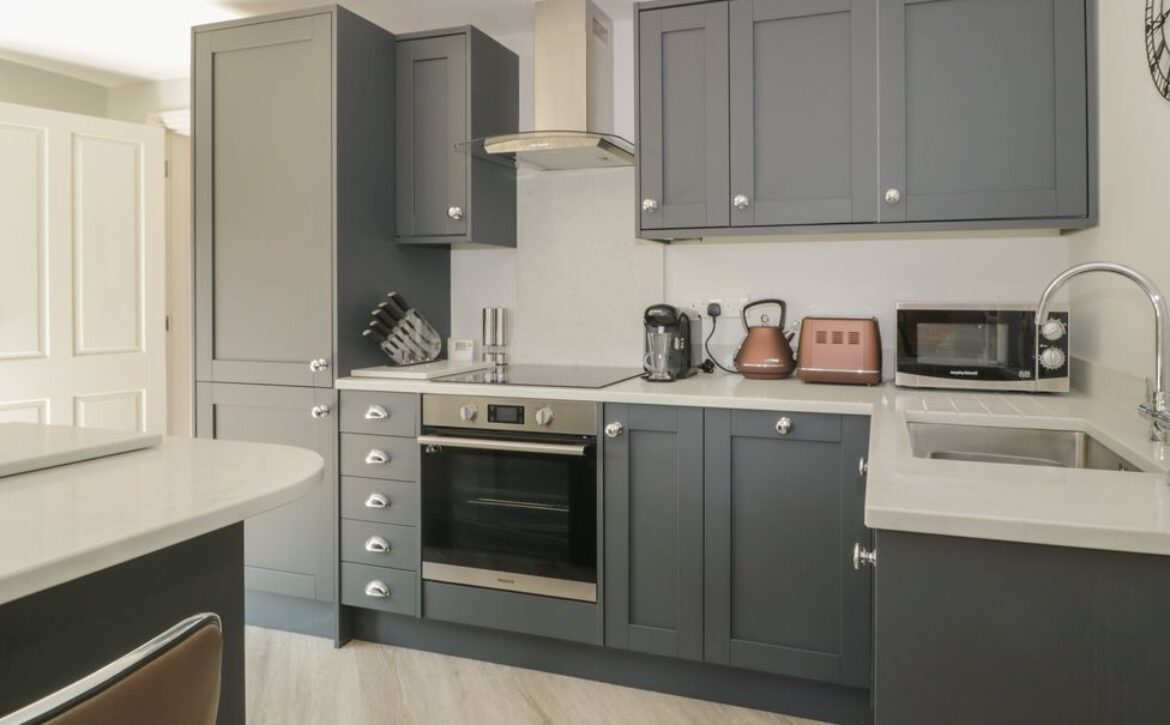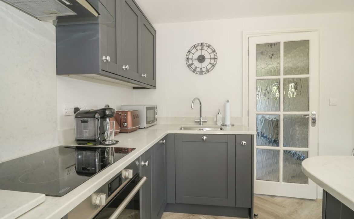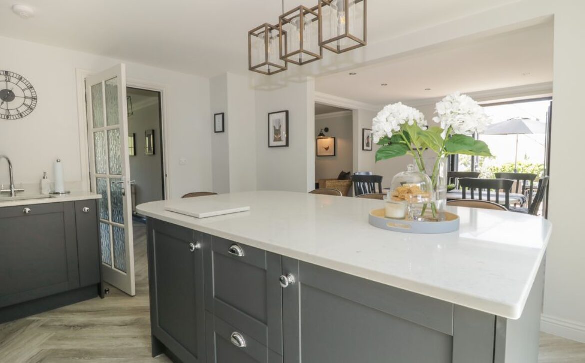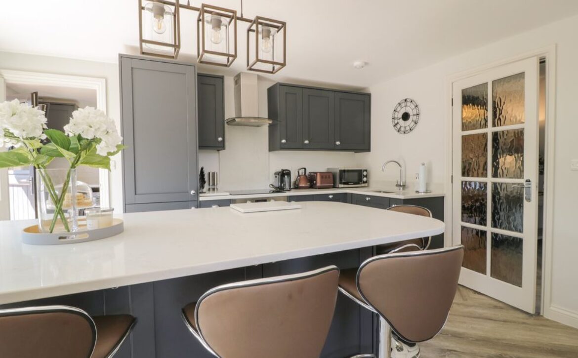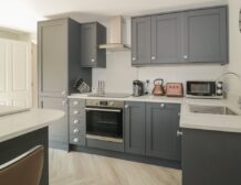 Certain to entice any budding chefs of the group is the sleek kitchen, boasting contemporary units and everything you could possibly need to cater for yourself, including the central island unit, which makes a great spot for enjoying a glass of wine as dinner simmers on the hob.