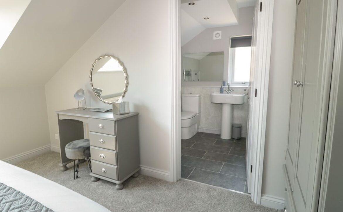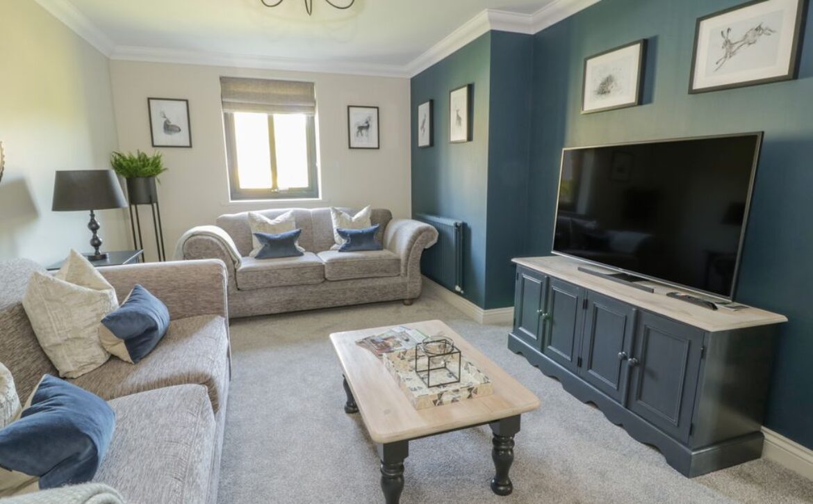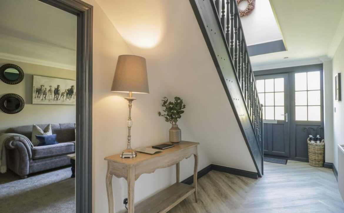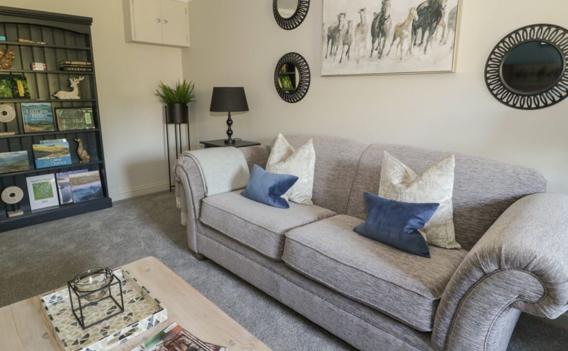 The clever blend of traditional and contemporary is continued into the sitting room, where plush furnishings surround a woodburning stove, offering a gentle warmth as you tune into the 32inch Smart TV with Freeplay or ask Alexa to play your favourite radio station of an evening.