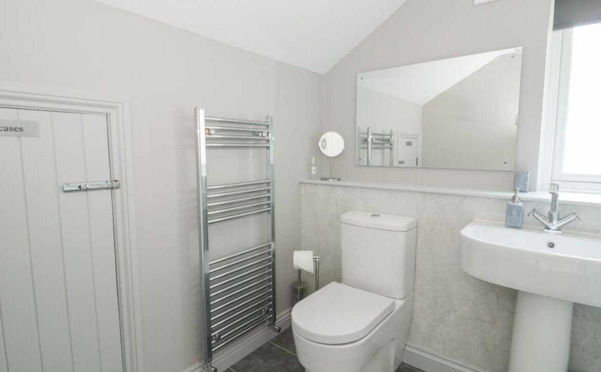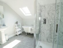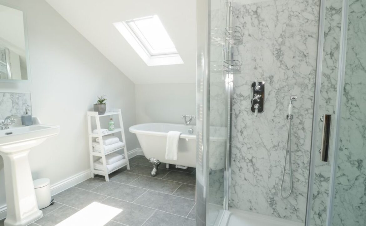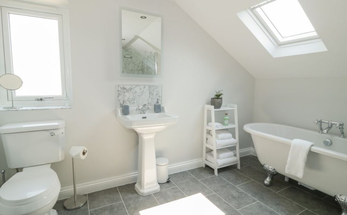 Concluding the first floor is the deluxe family bathroom, complete with a sleek walk-in shower, a freestanding bath, basin and WC.