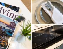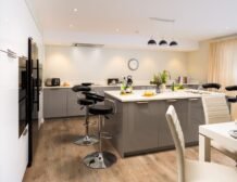The designer kitchen has everything you need to prepare delicious meals – two ovens, microwave, wine cooler and an induction hob.
